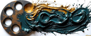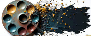 AI-generated premium painter's palette digital designs — metallic, polished, and fantastical palette art in UHD.