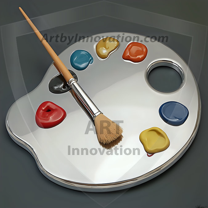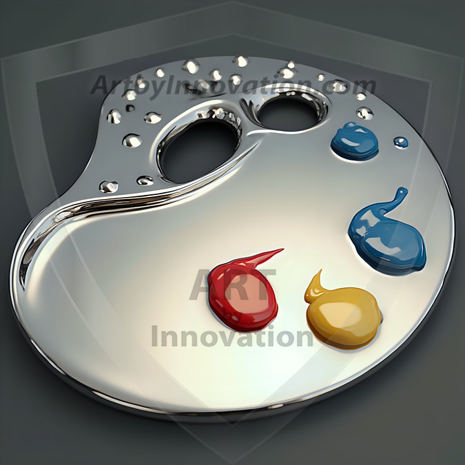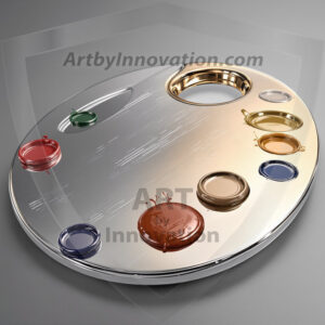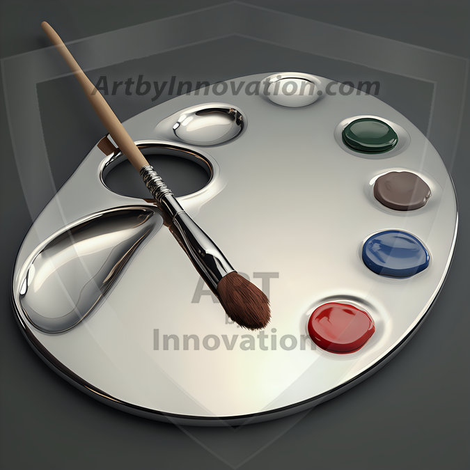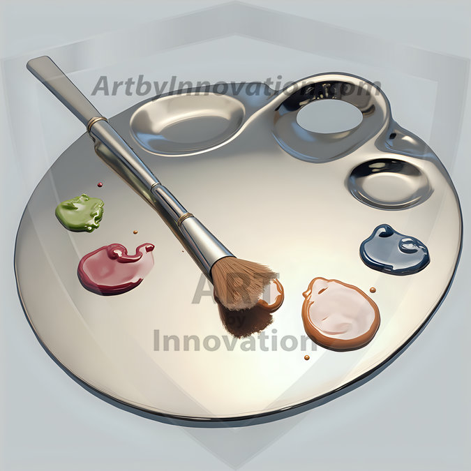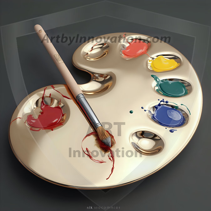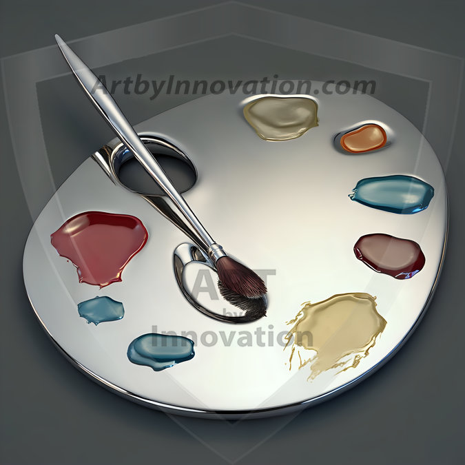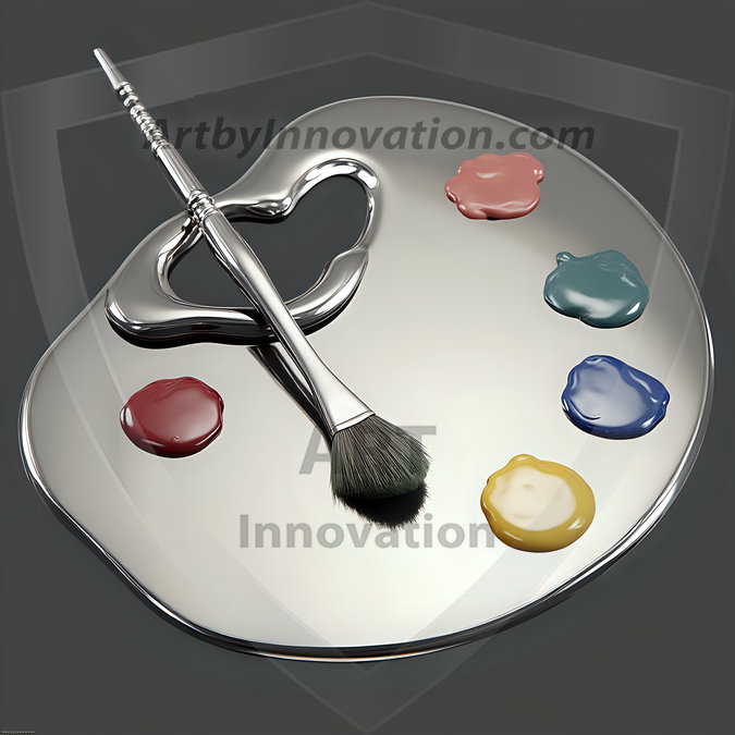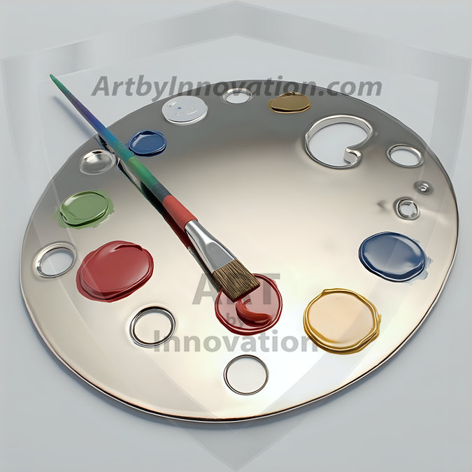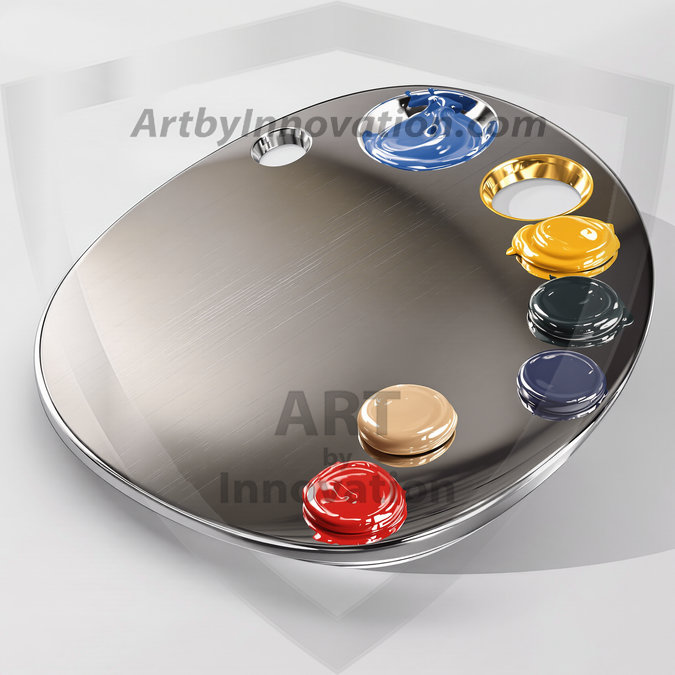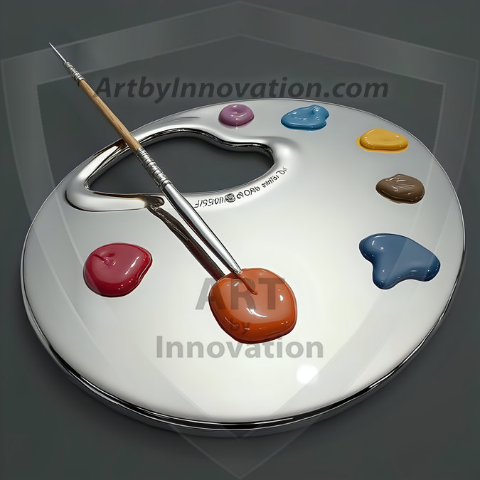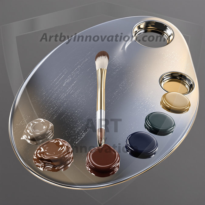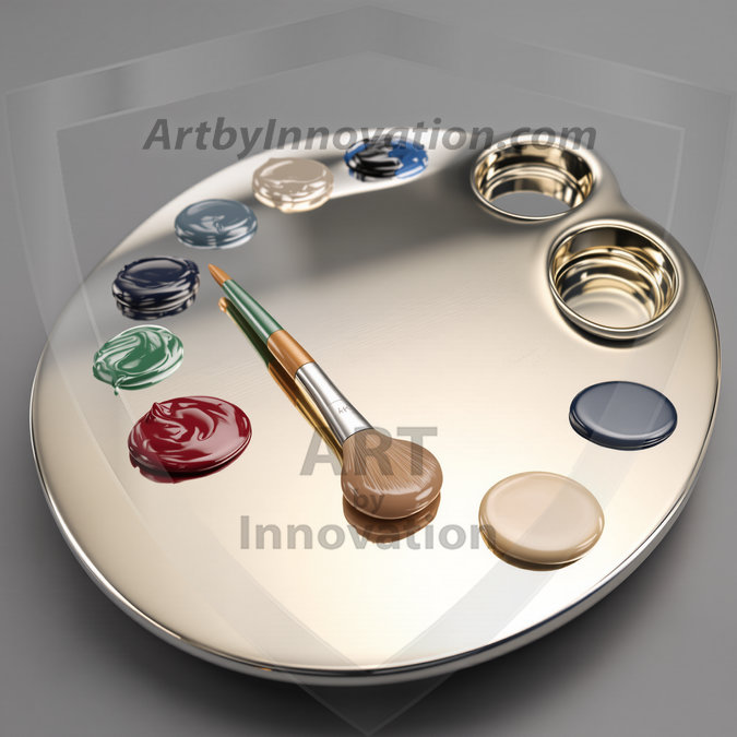 AI-generated premium painter's palette digital designs — metallic, polished, and fantastical palette art in UHD.