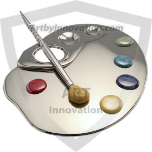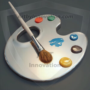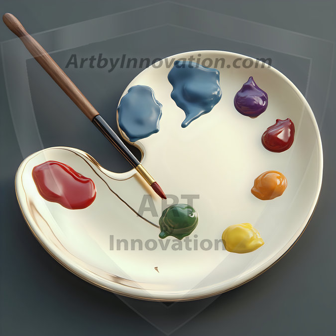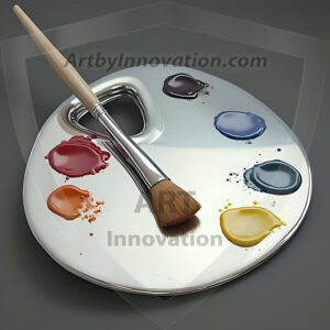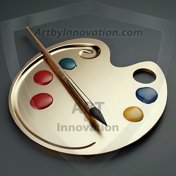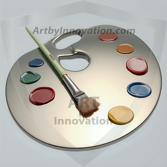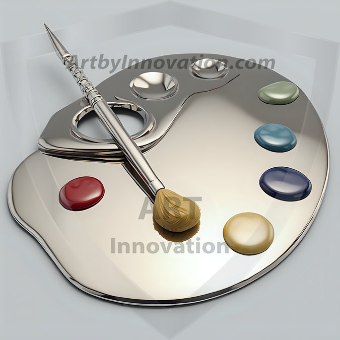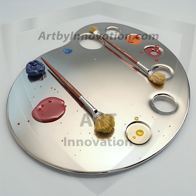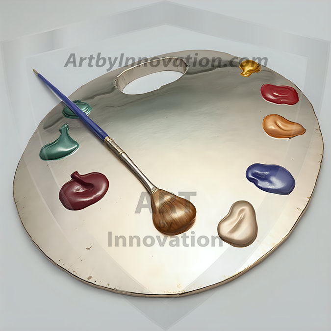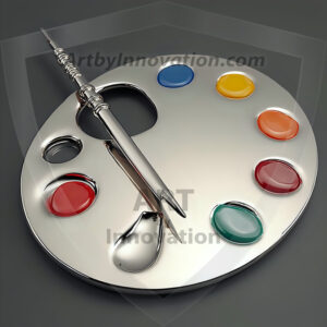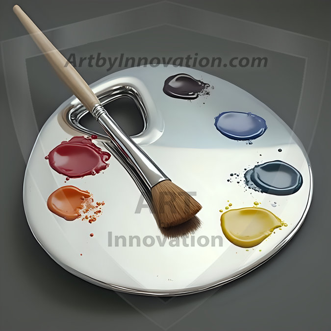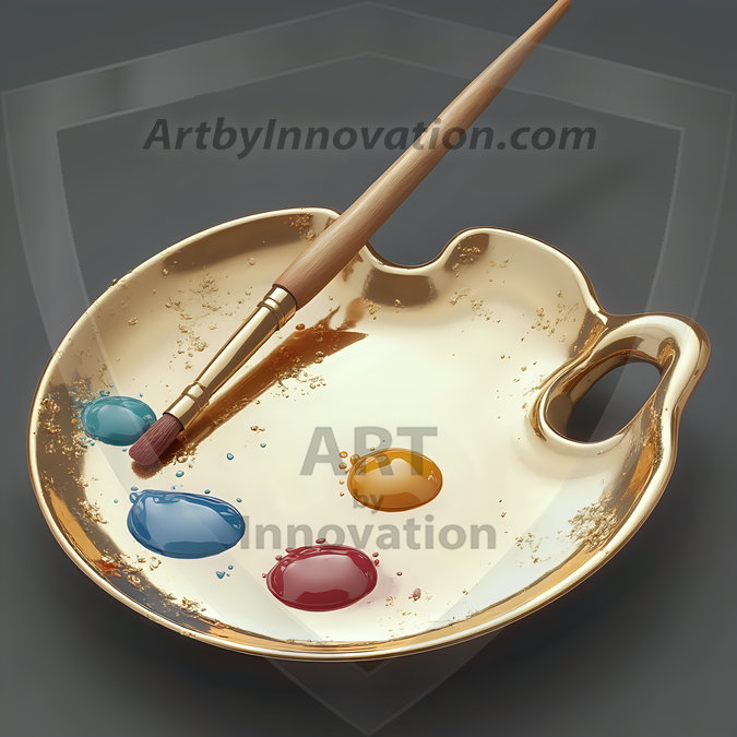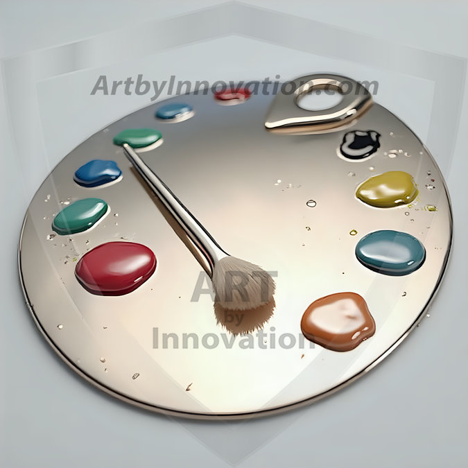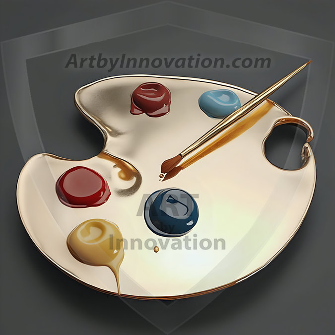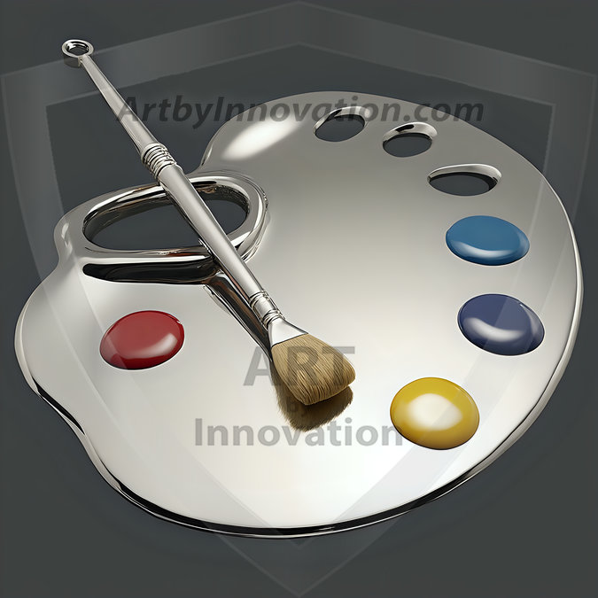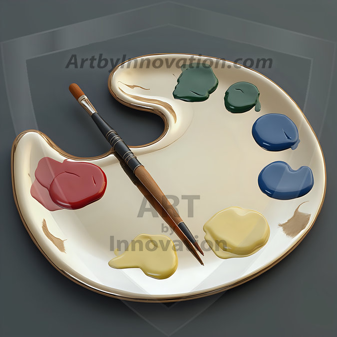 AI-generated premium painter's palette digital designs — metallic, polished, and fantastical palette art in UHD.