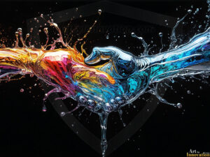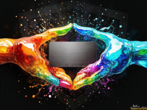AI-generated rainbow liquid connecting hands logo designs — 213 UHD concepts with blank plate, ready for branding.