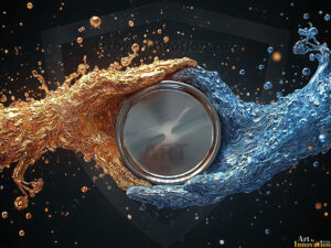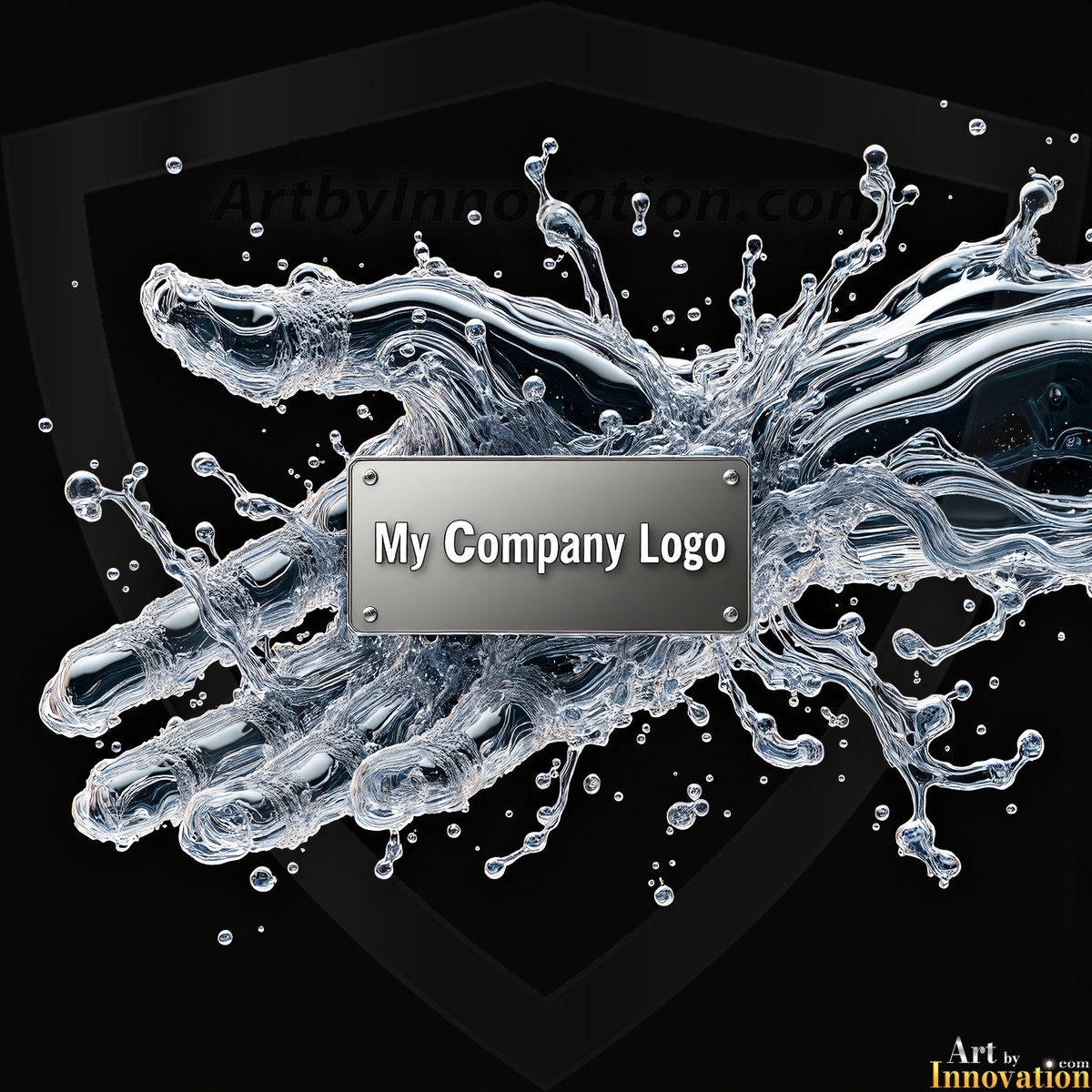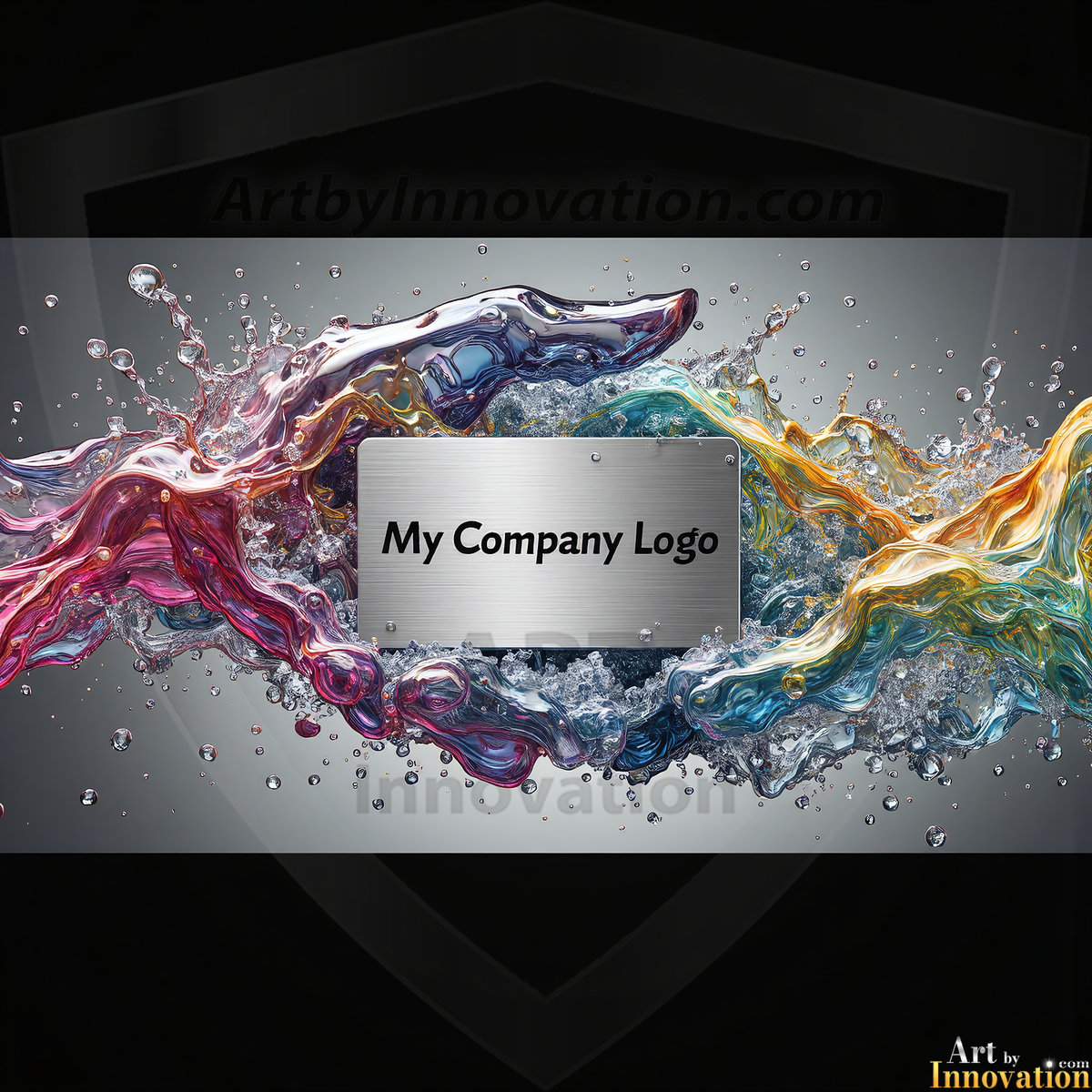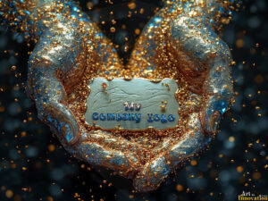 AI-generated metallic logo designs — polished gold, silver, and chrome company logos in UHD, blank and ready for branding.