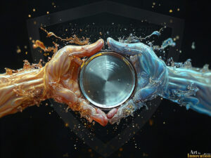 AI-generated rainbow liquid connecting hands logo designs — 213 UHD concepts with blank plate, ready for branding.