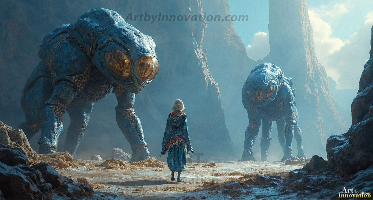 AI-generated alien planet art featuring exotic creatures, bizarre flora, and breathtaking extraterrestrial landscapes.