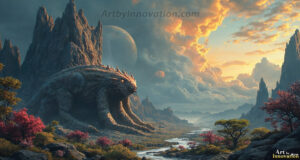 AI-generated alien planet art featuring exotic creatures, bizarre flora, and breathtaking extraterrestrial landscapes.