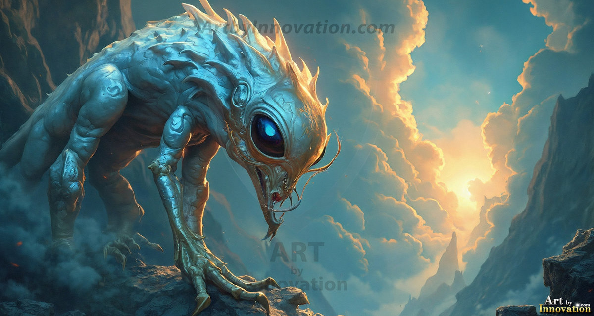 AI-generated alien planet art featuring exotic creatures, bizarre flora, and breathtaking extraterrestrial landscapes.