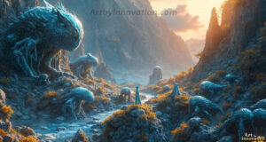 AI-generated alien planet art featuring exotic creatures, bizarre flora, and breathtaking extraterrestrial landscapes.