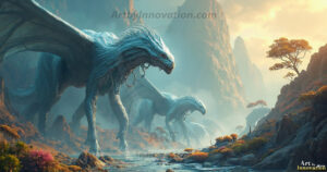 The Fantasy Artwork Collection, vibrant and detailed fantasy photographs of an alien planets, where every element appears meticulously crafted from iridescent stained glass. Magical enchanted forests with adorable little creatures. The Dragon God Bahamut Dominates the Sky, passing Devine Judgment. Amazing fantasy photographs of a unicorns, capturing the essence of the unicorn as runs through a mountainside meadows.