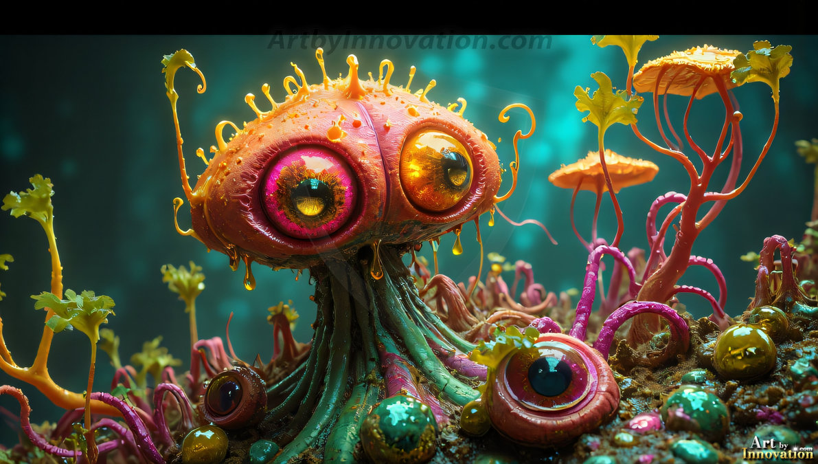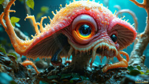 AI-generated alien planet art featuring exotic creatures, bizarre flora, and breathtaking extraterrestrial landscapes.