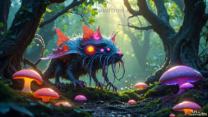 AI-generated alien planet art featuring exotic creatures, bizarre flora, and breathtaking extraterrestrial landscapes.