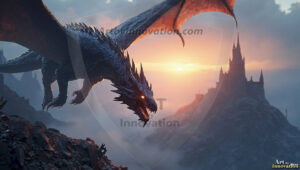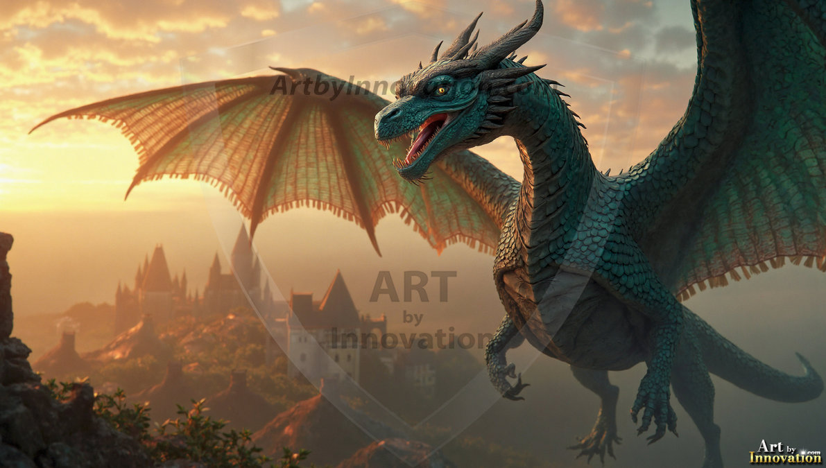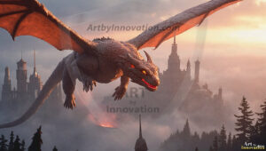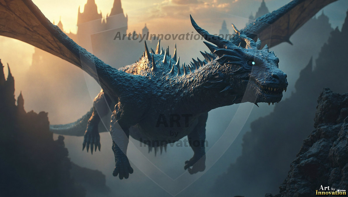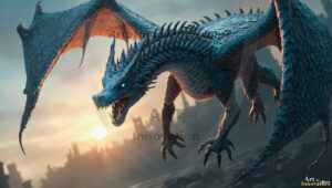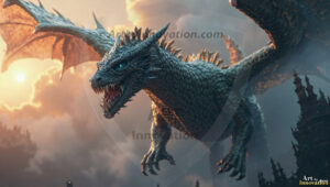 AI-generated powerful majestic dragon art — fire-breathing giants, Bahamut the Dragon God, and epic fantasy dragon scenes.
