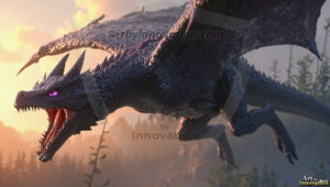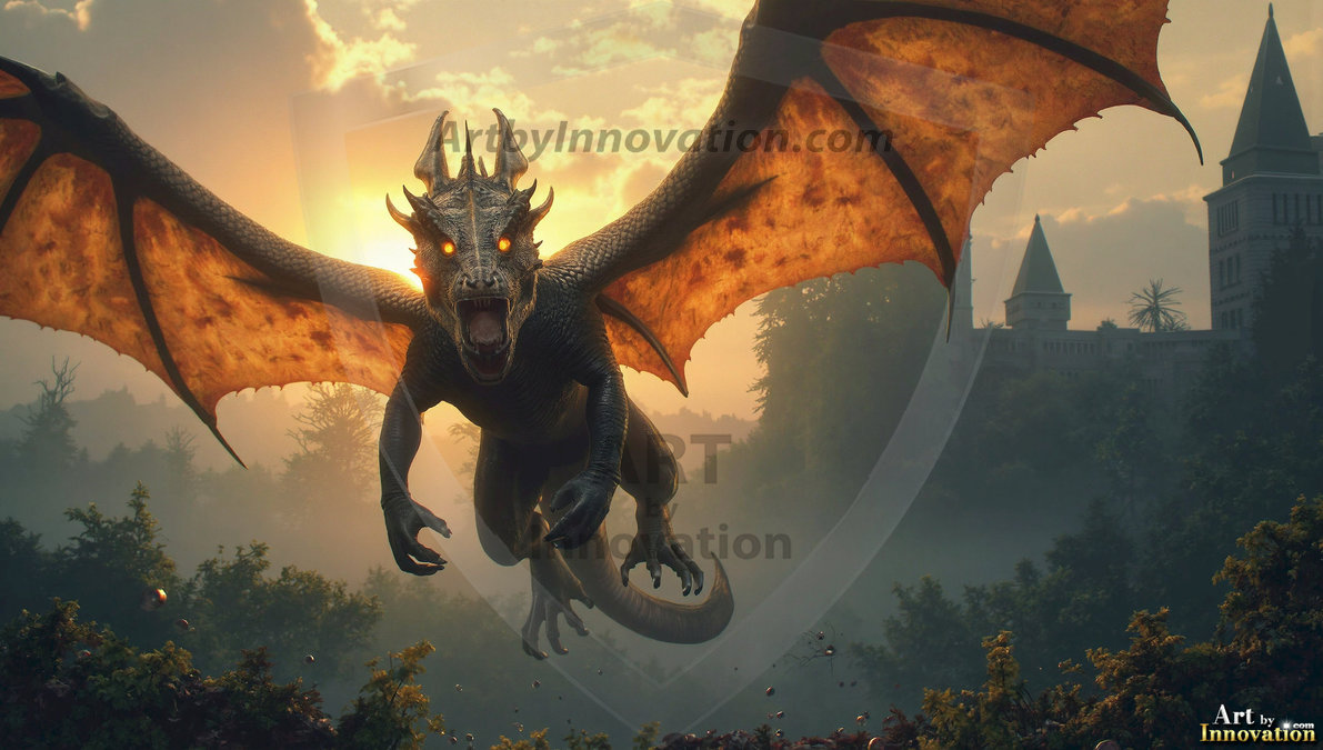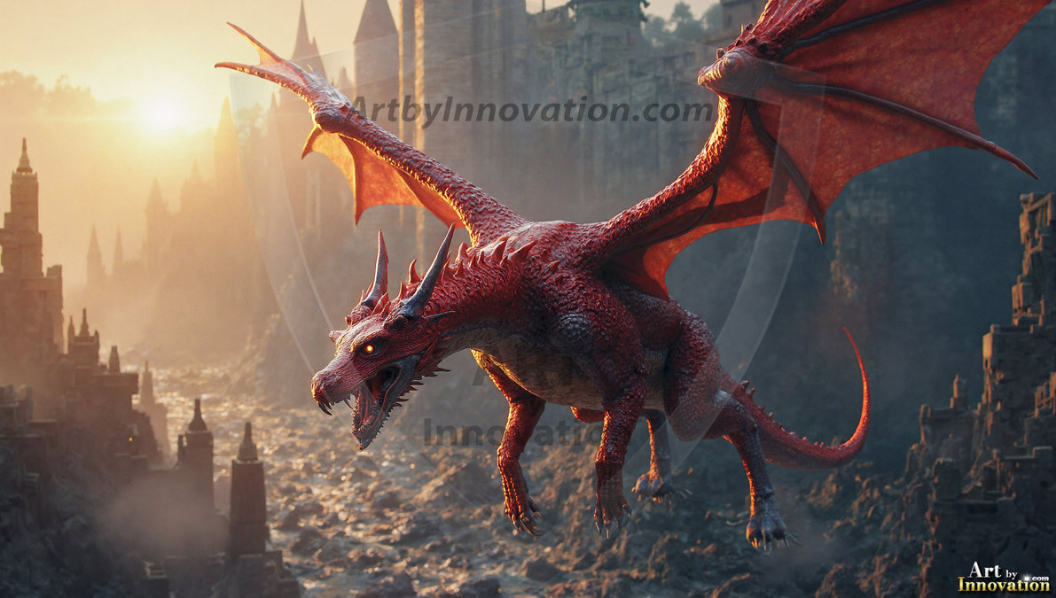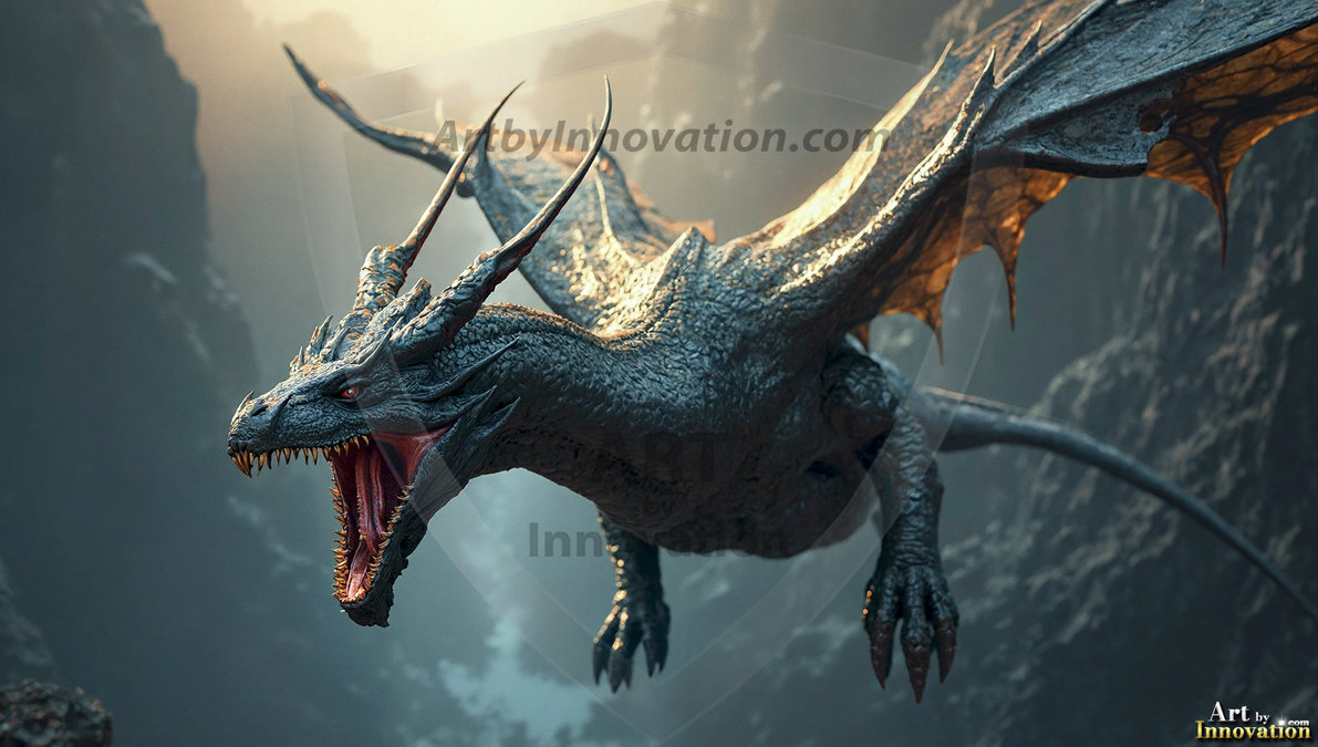 AI-generated powerful majestic dragon art — fire-breathing giants, Bahamut the Dragon God, and epic fantasy dragon scenes.