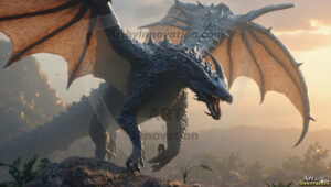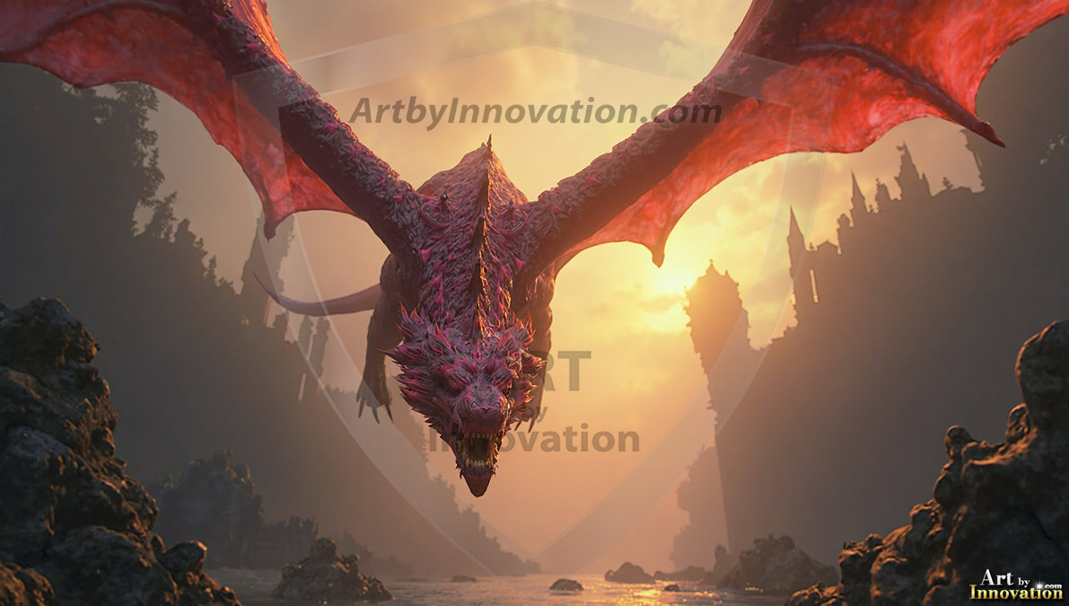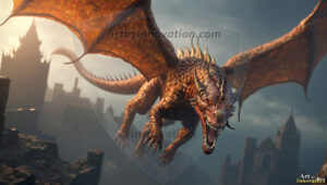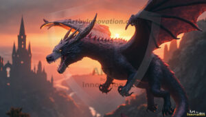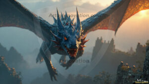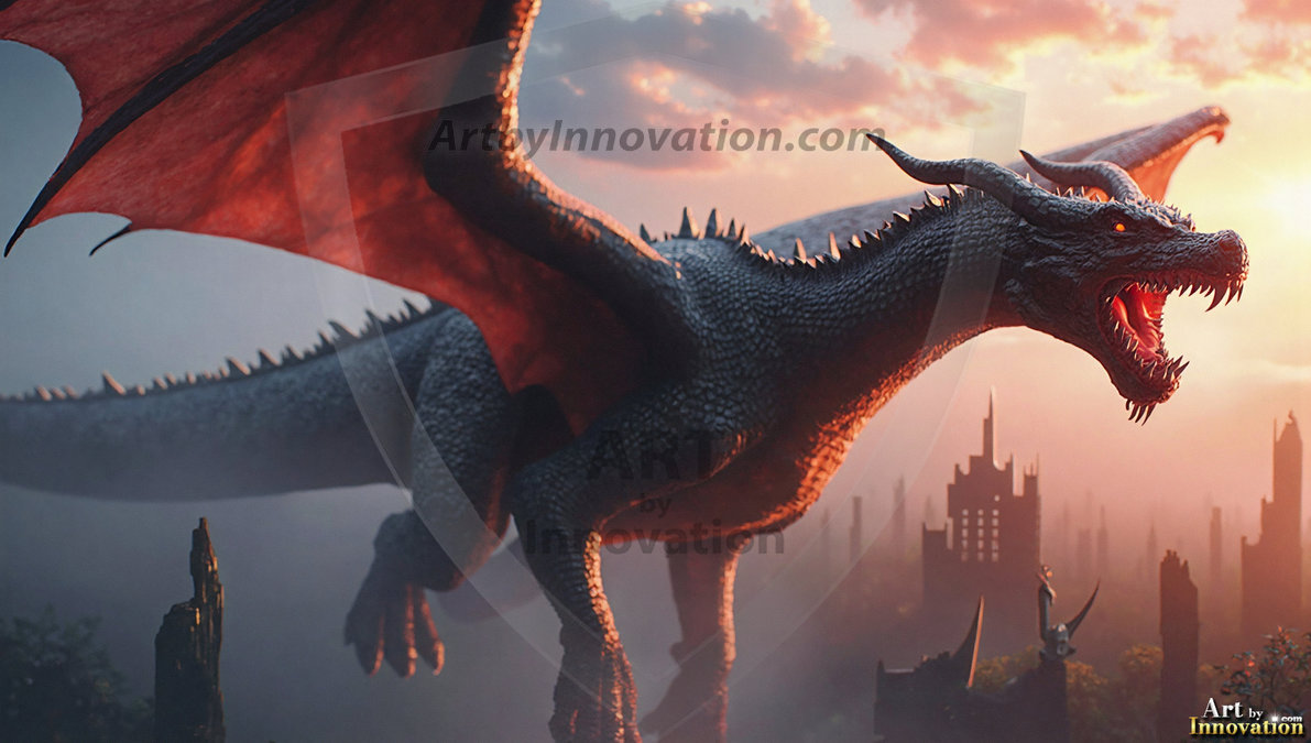 AI-generated powerful majestic dragon art — fire-breathing giants, Bahamut the Dragon God, and epic fantasy dragon scenes.