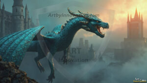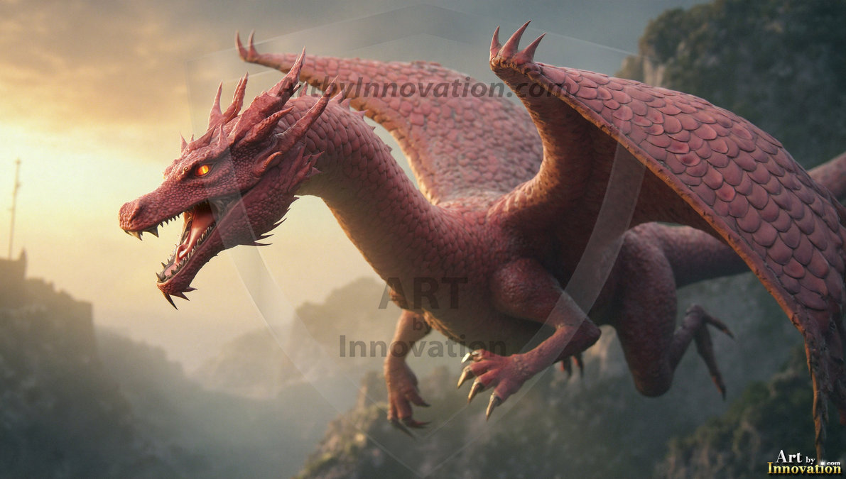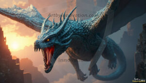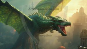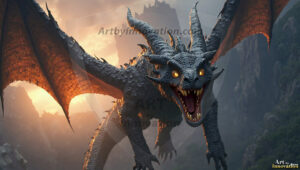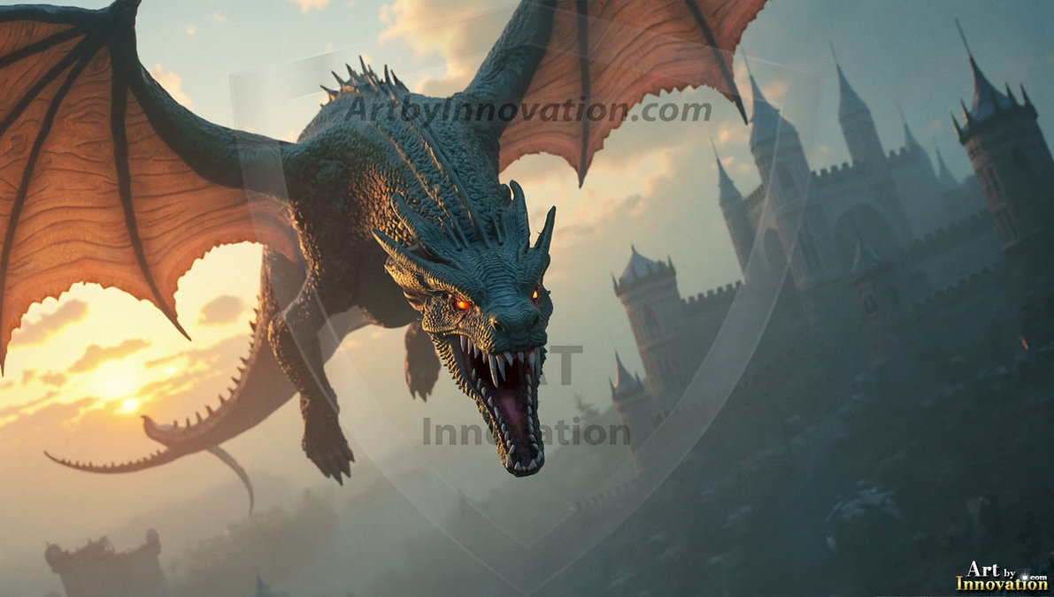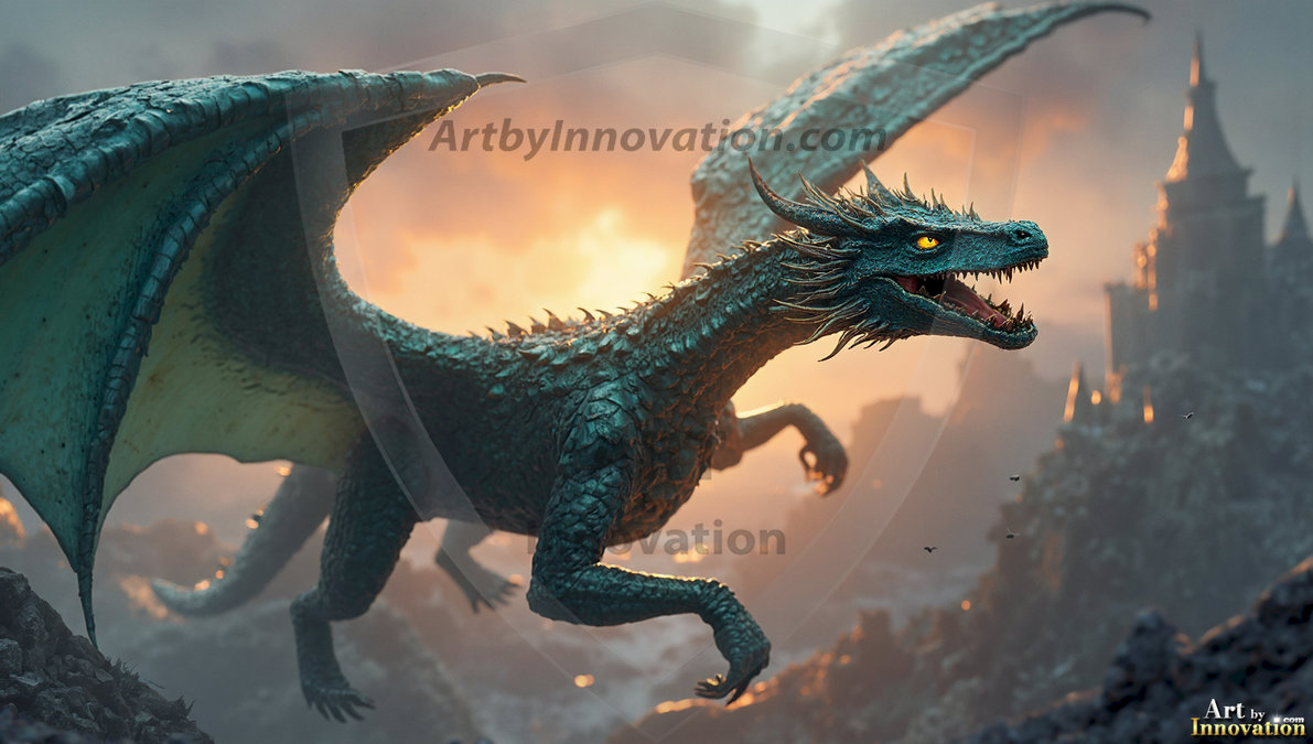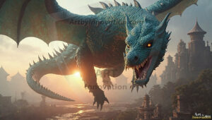 AI-generated powerful majestic dragon art — fire-breathing giants, Bahamut the Dragon God, and epic fantasy dragon scenes.