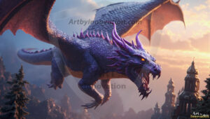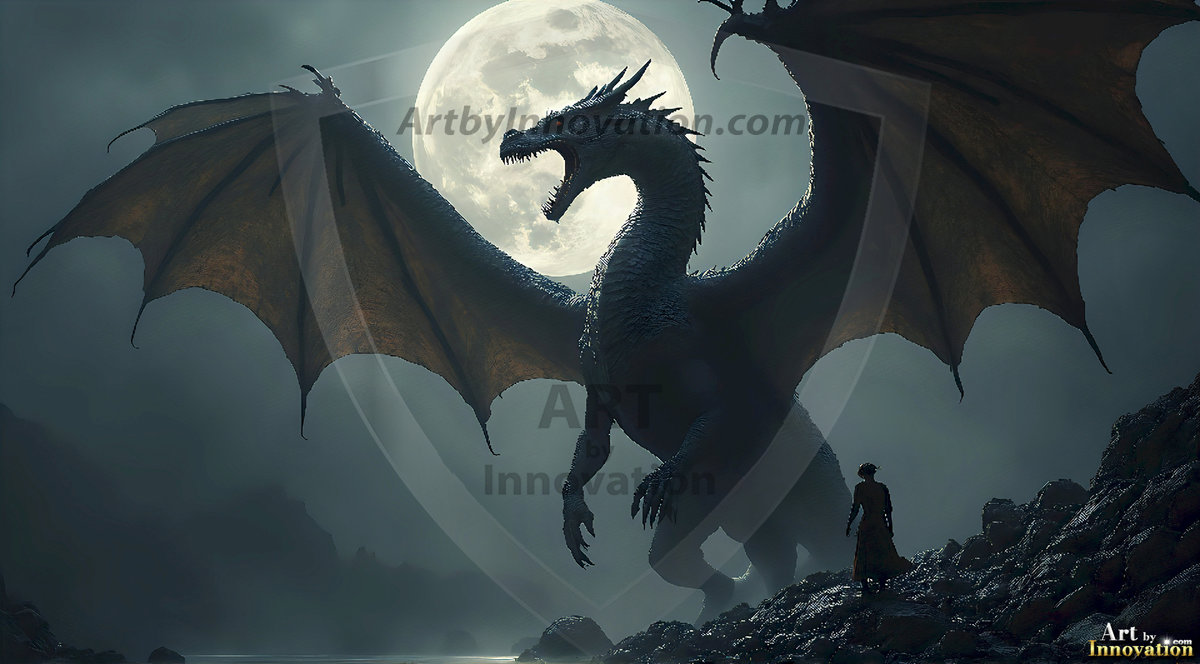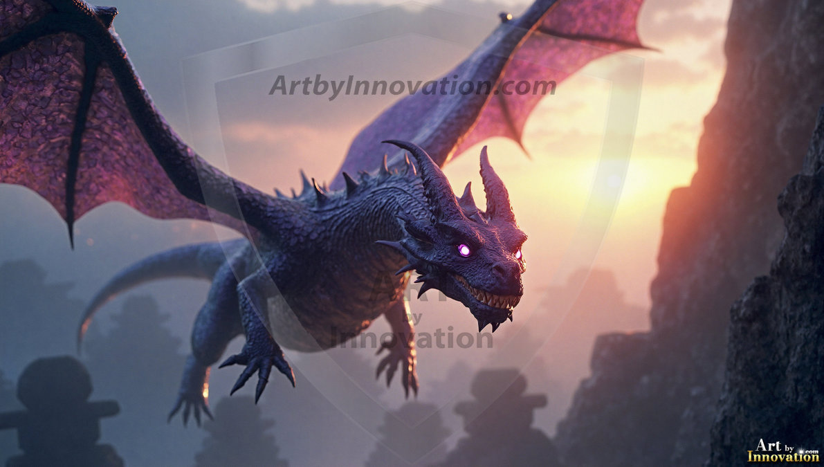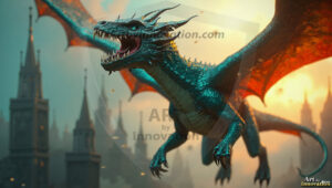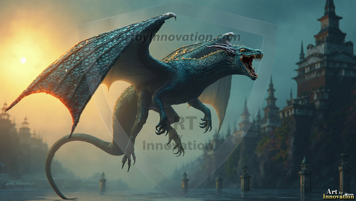 AI-generated powerful majestic dragon art — fire-breathing giants, Bahamut the Dragon God, and epic fantasy dragon scenes.