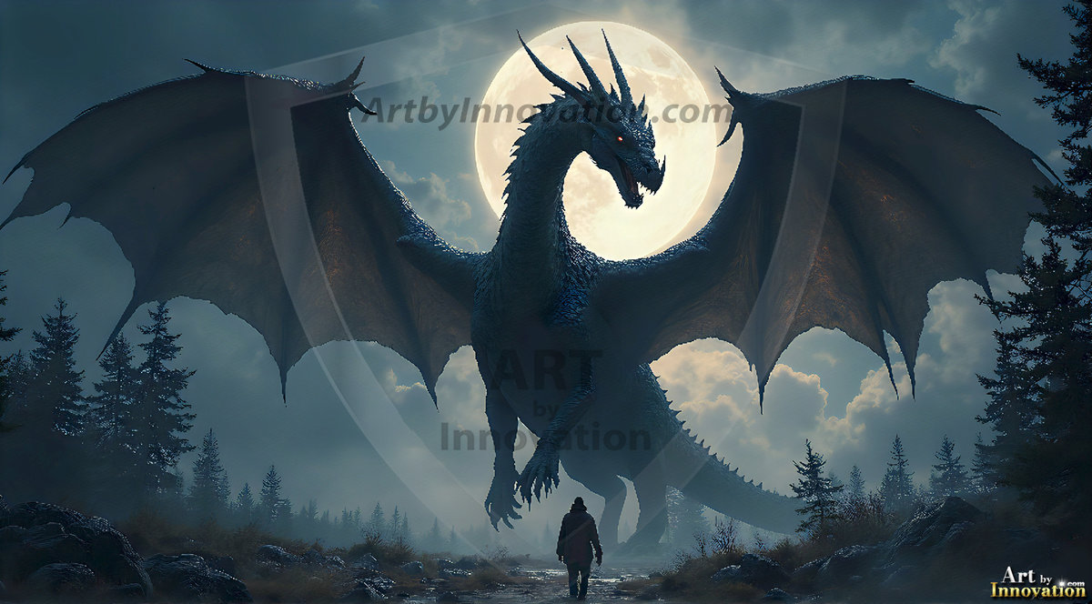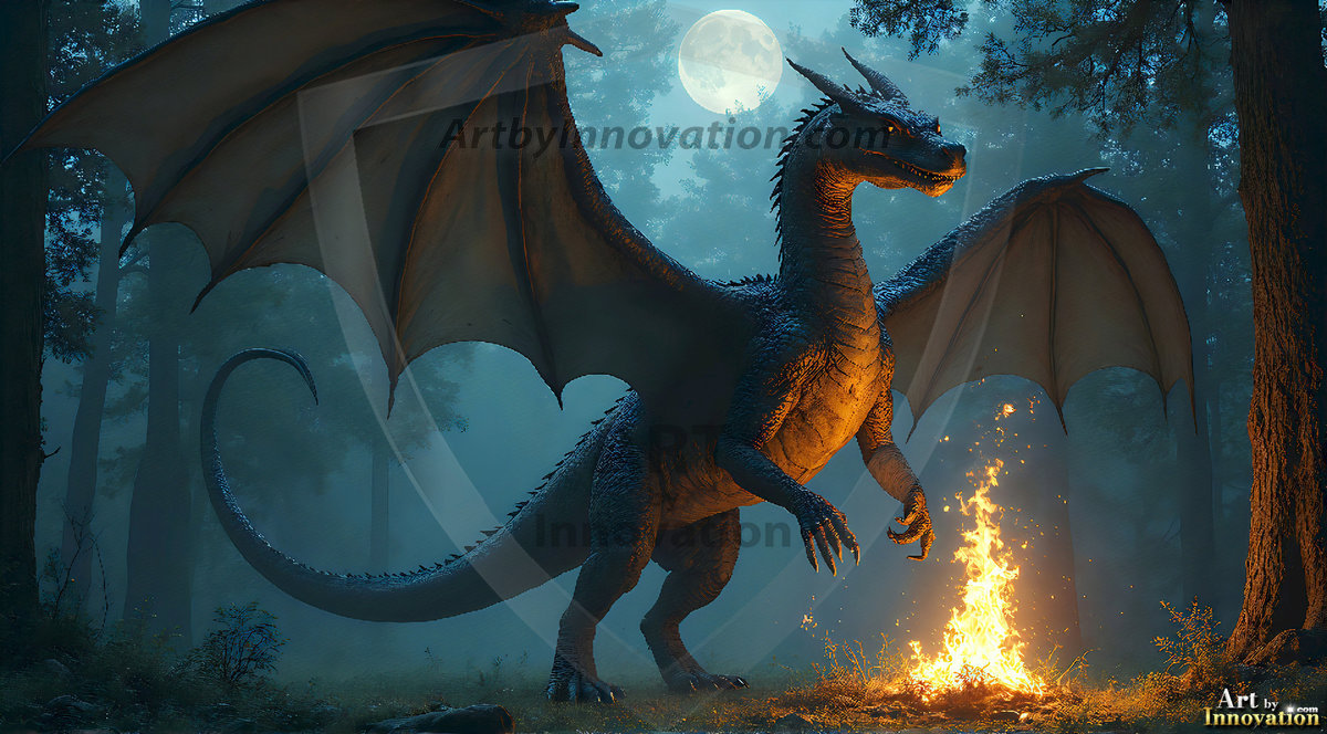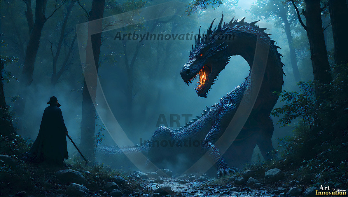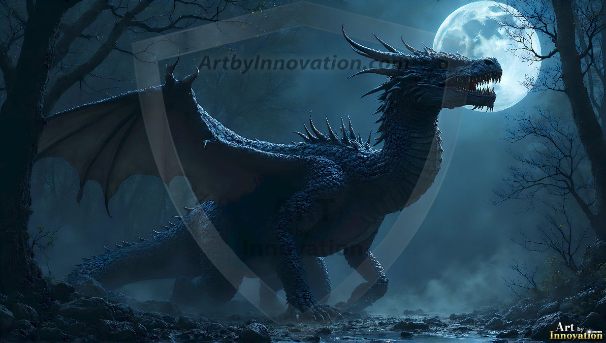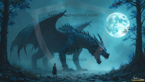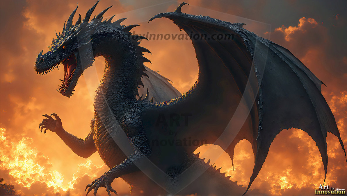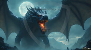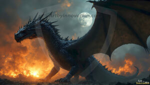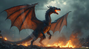 AI-generated powerful majestic dragon art — fire-breathing giants, Bahamut the Dragon God, and epic fantasy dragon scenes.