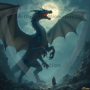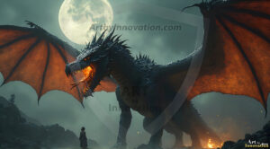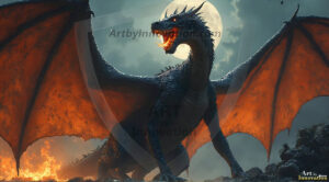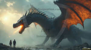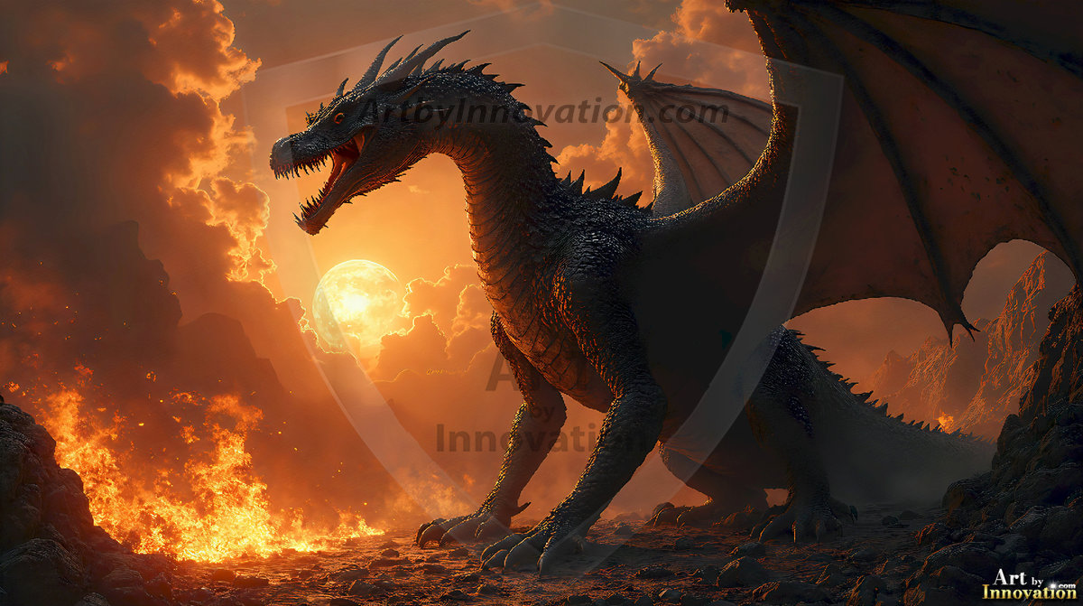 AI-generated powerful majestic dragon art — fire-breathing giants, Bahamut the Dragon God, and epic fantasy dragon scenes.