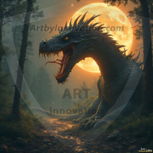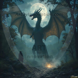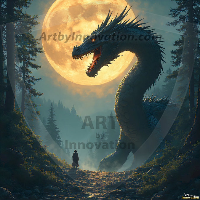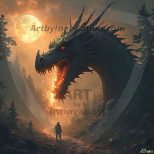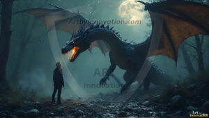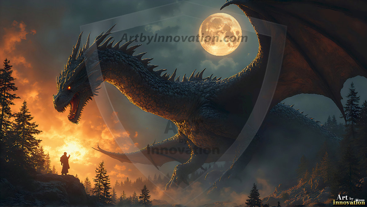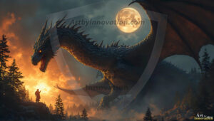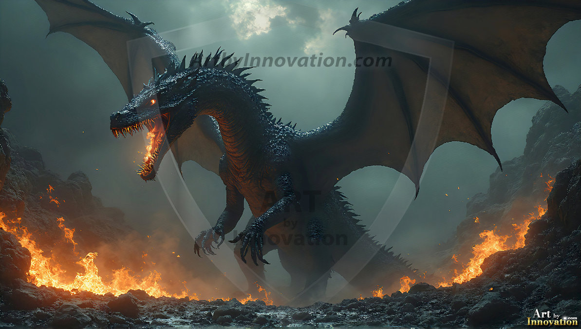 AI-generated powerful majestic dragon art — fire-breathing giants, Bahamut the Dragon God, and epic fantasy dragon scenes.