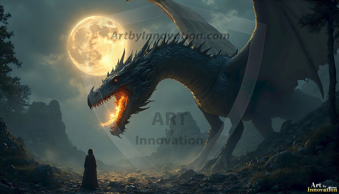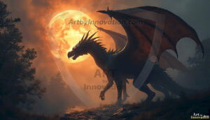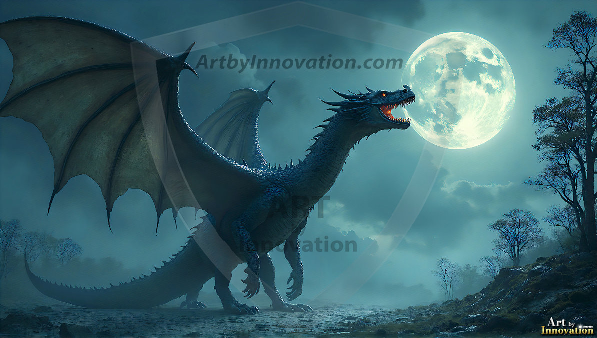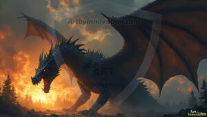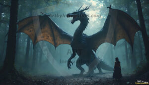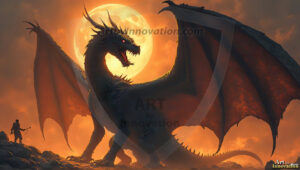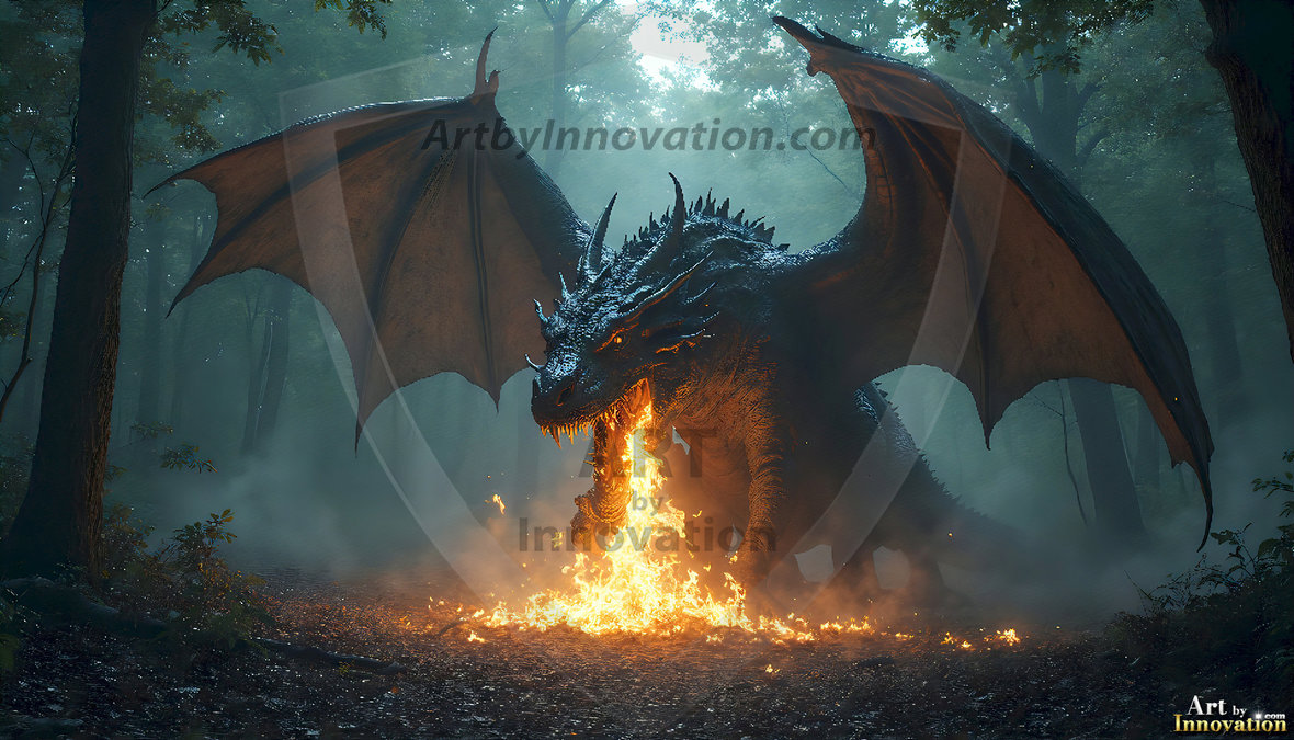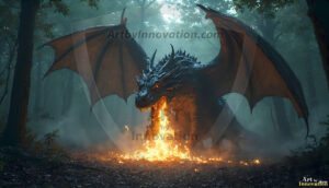 AI-generated powerful majestic dragon art — fire-breathing giants, Bahamut the Dragon God, and epic fantasy dragon scenes.