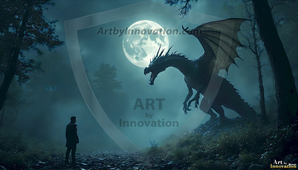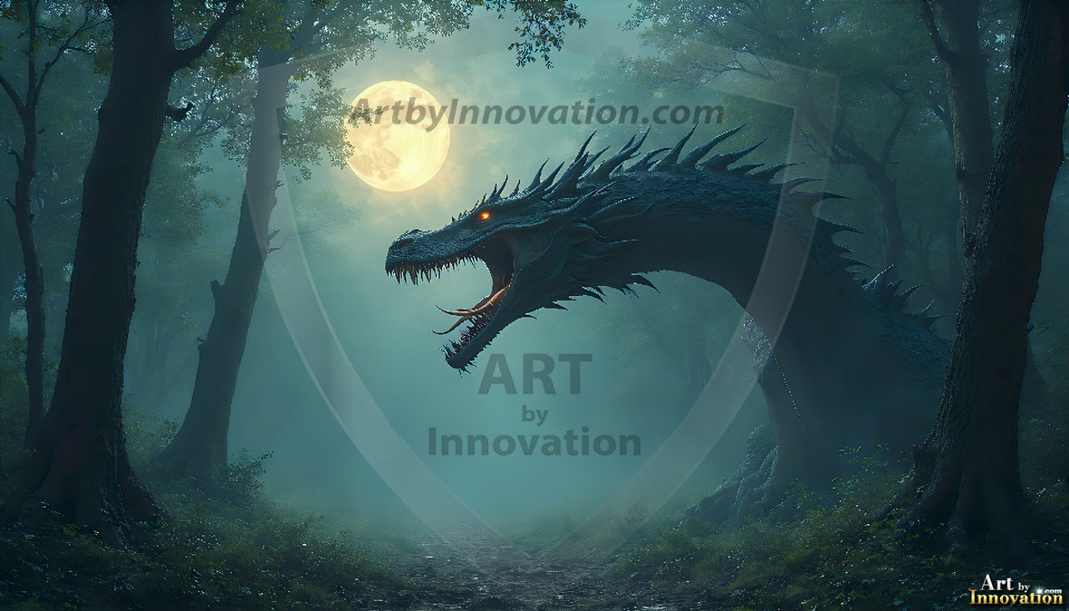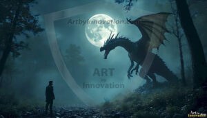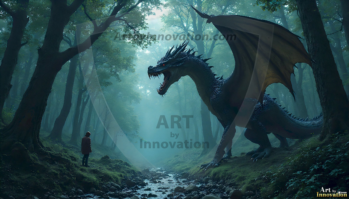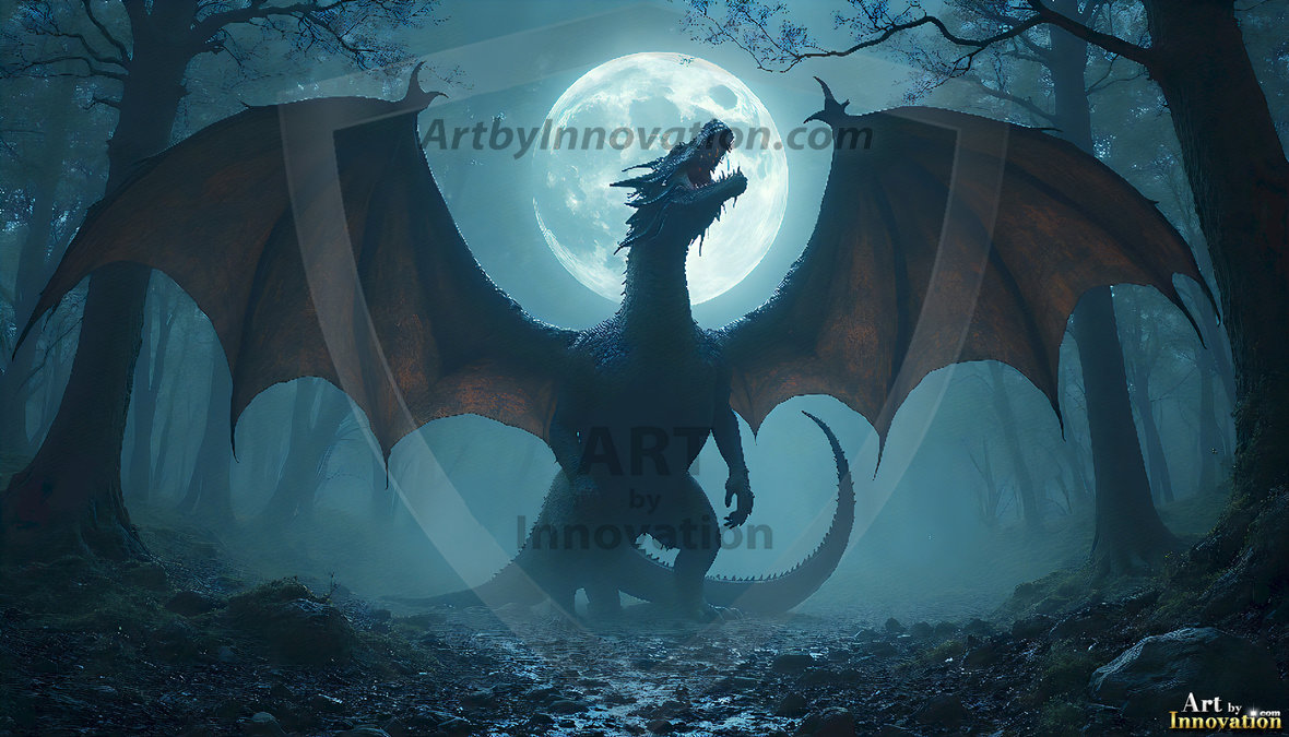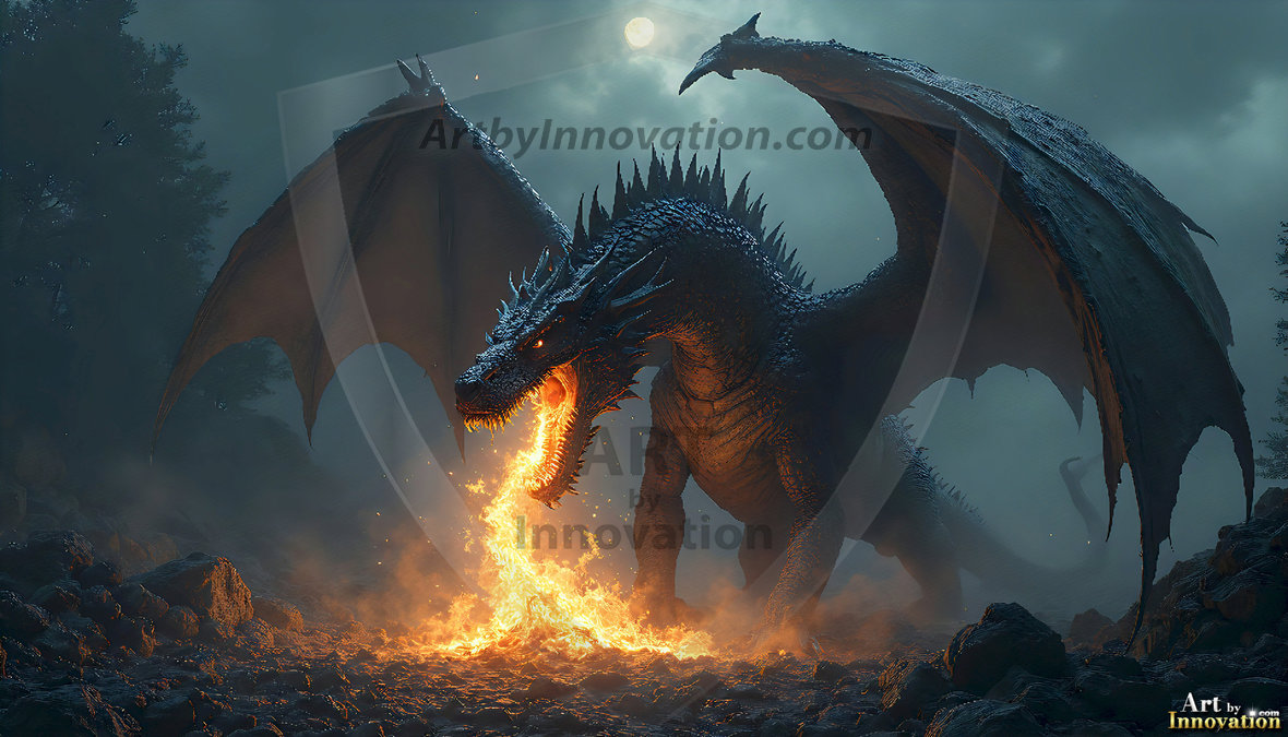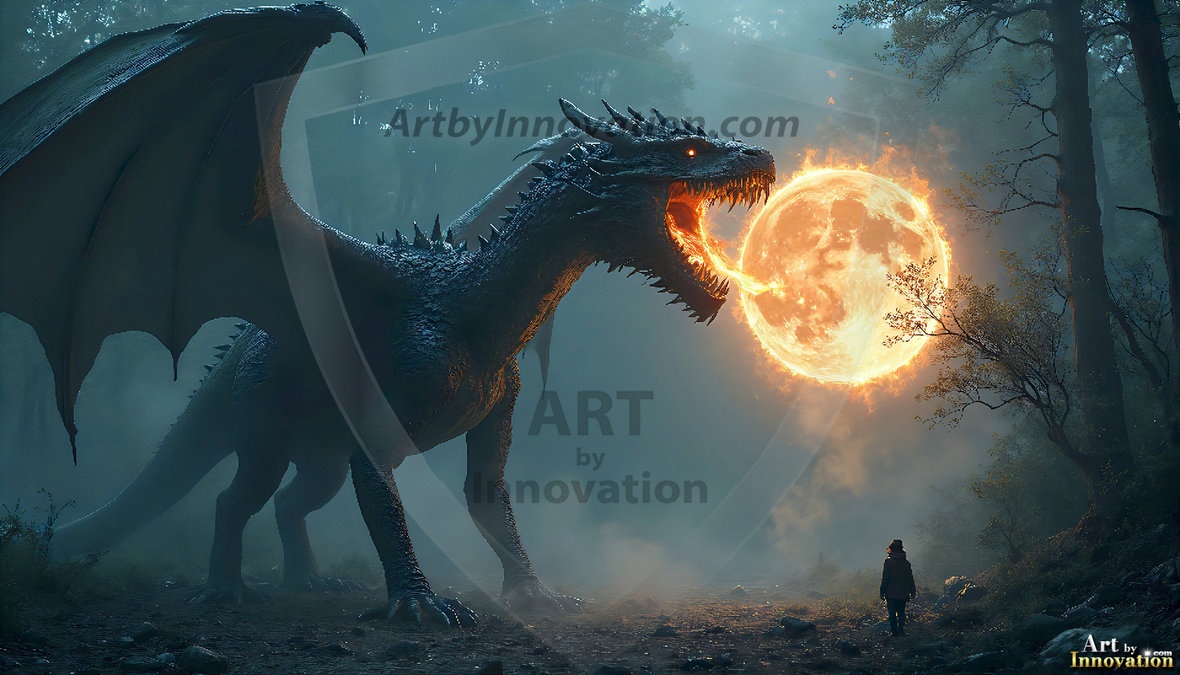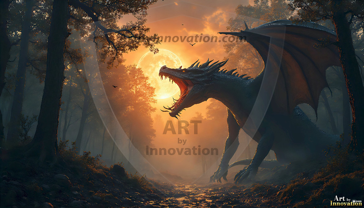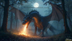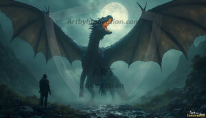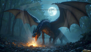 AI-generated powerful majestic dragon art — fire-breathing giants, Bahamut the Dragon God, and epic fantasy dragon scenes.