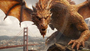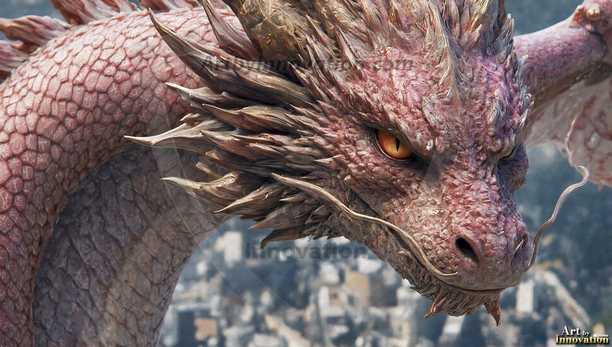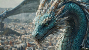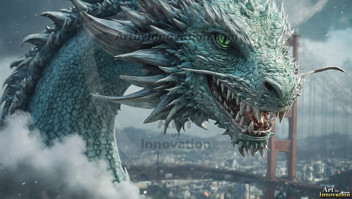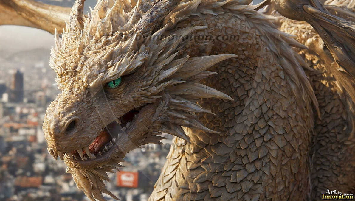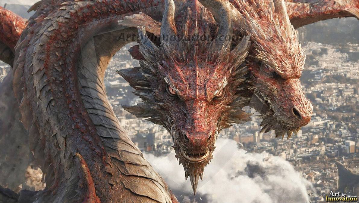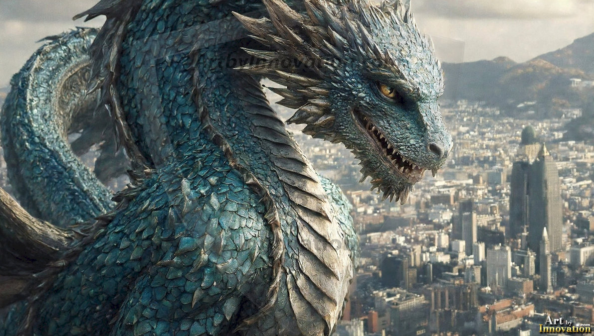 AI-generated powerful majestic dragon art — fire-breathing giants, Bahamut the Dragon God, and epic fantasy dragon scenes.