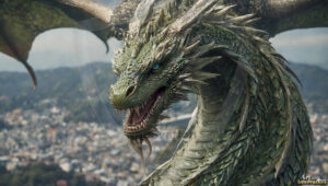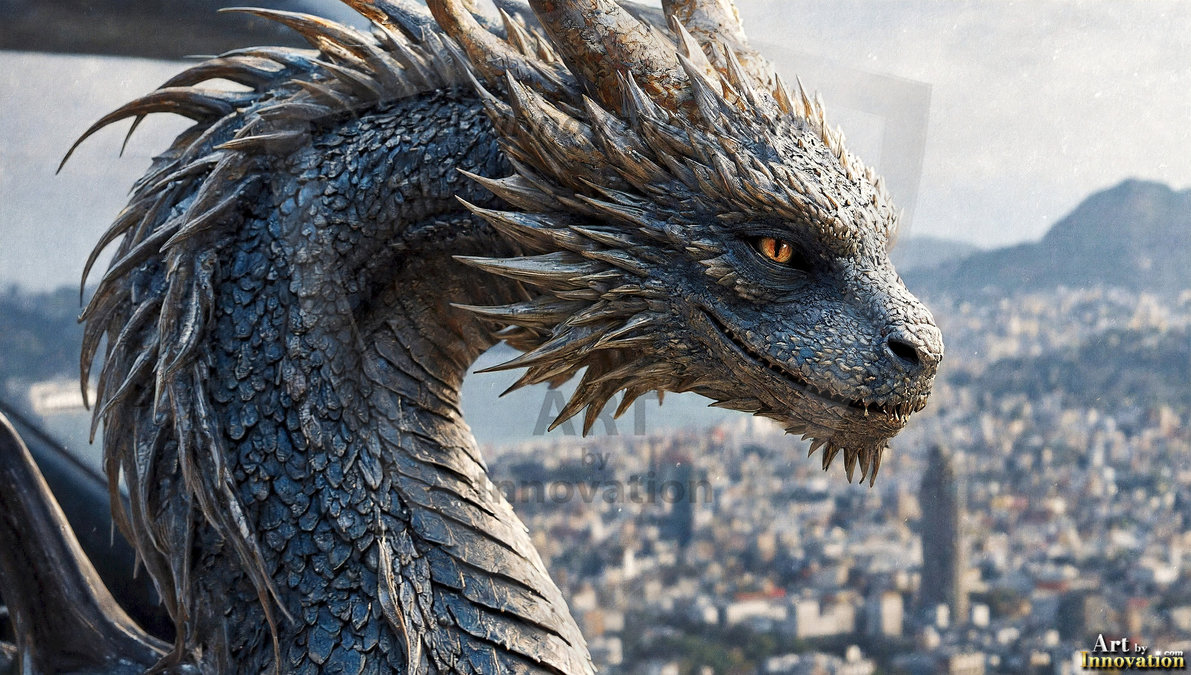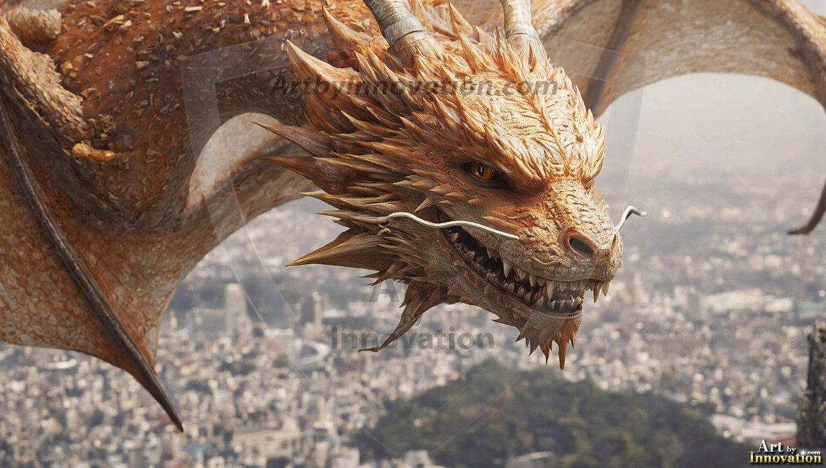 AI-generated powerful majestic dragon art — fire-breathing giants, Bahamut the Dragon God, and epic fantasy dragon scenes.