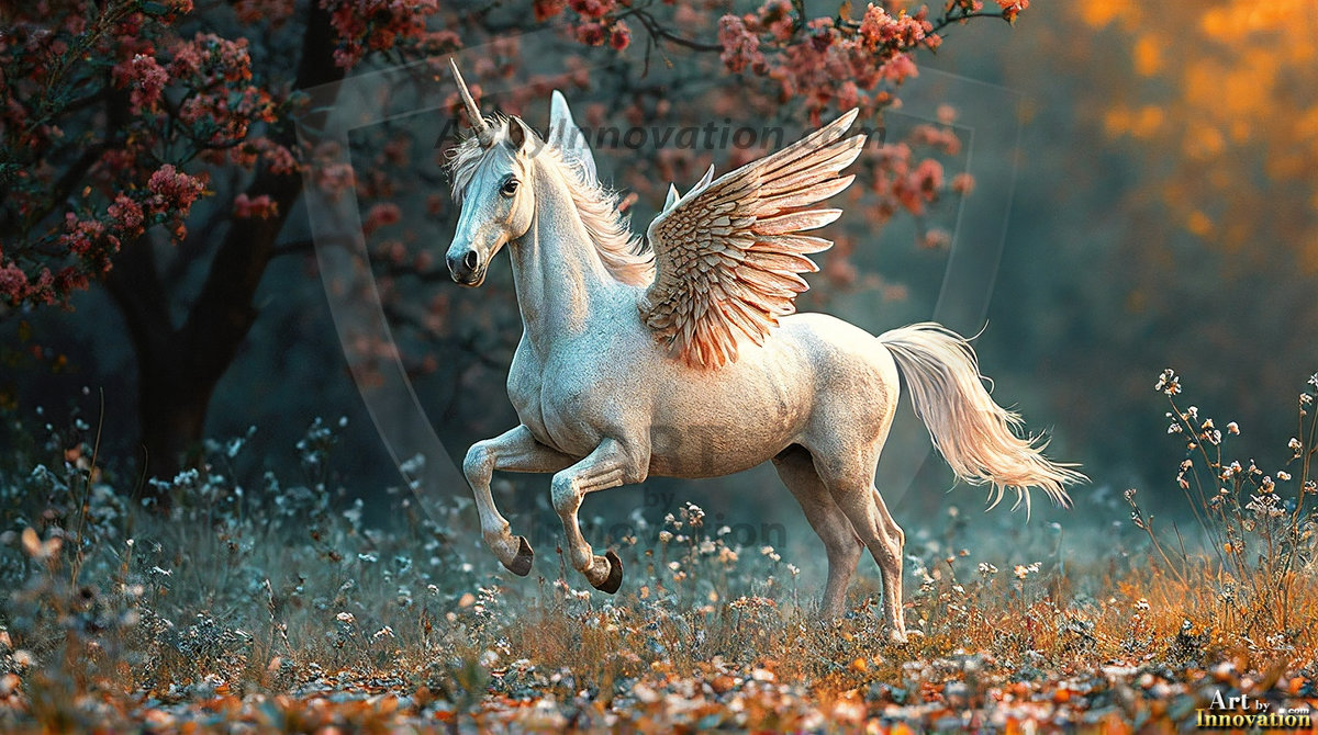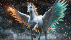 AI-generated unicorn art — majestic alicorns, rainbow-maned mythical horses, and magical fantasy landscapes in stunning detail.