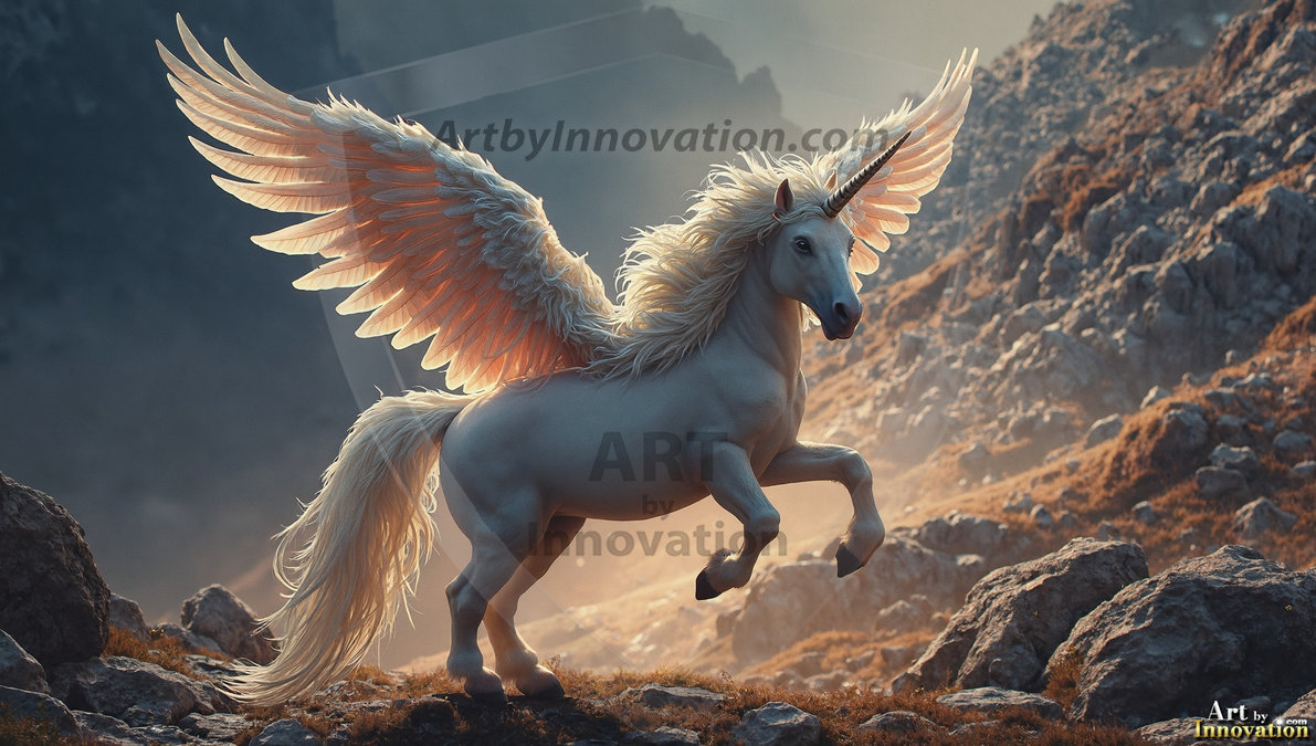 AI-generated unicorn art — majestic alicorns, rainbow-maned mythical horses, and magical fantasy landscapes in stunning detail.