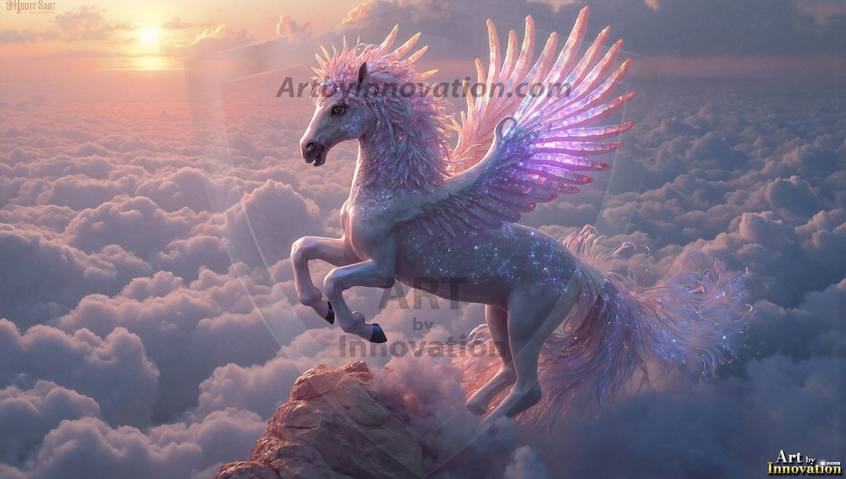 AI-generated unicorn art — majestic alicorns, rainbow-maned mythical horses, and magical fantasy landscapes in stunning detail.