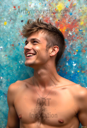 Fluid, dynamic, and breathtaking — this AI-generated abstract art collection captures handsome men in a cosmic dance with colorful liquid and light. Powerful swirls of vibrant, iridescent fluid erupt and cascade around them, forming swirling vortexes of rainbow color that respond to their every movement. Part fantasy, part surrealism, and entirely extraordinary. Created using Flux.1,…