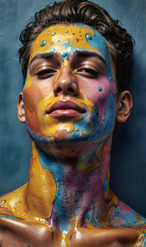 Fluid, dynamic, and breathtaking — this AI-generated abstract art collection captures handsome men in a cosmic dance with colorful liquid and light. Powerful swirls of vibrant, iridescent fluid erupt and cascade around them, forming swirling vortexes of rainbow color that respond to their every movement. Part fantasy, part surrealism, and entirely extraordinary. Created using Flux.1,…