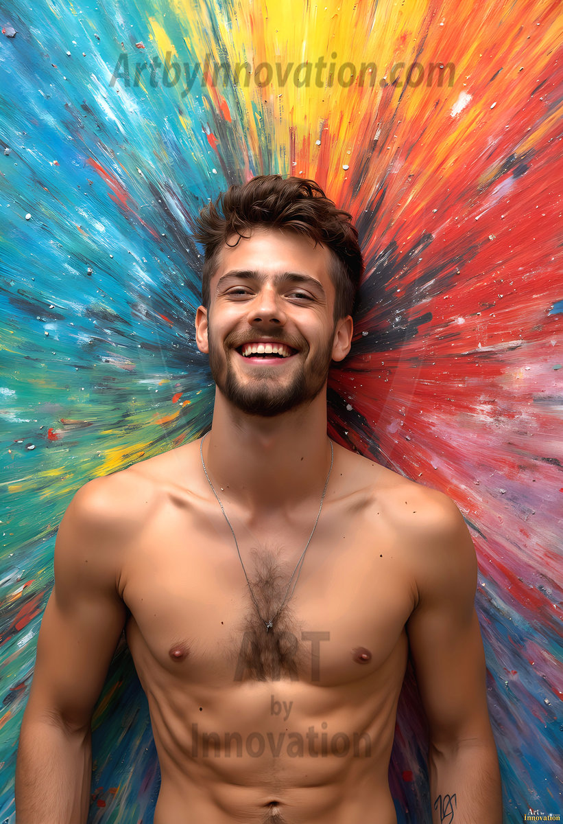 Fluid, dynamic, and breathtaking — this AI-generated abstract art collection captures handsome men in a cosmic dance with colorful liquid and light. Powerful swirls of vibrant, iridescent fluid erupt and cascade around them, forming swirling vortexes of rainbow color that respond to their every movement. Part fantasy, part surrealism, and entirely extraordinary. Created using Flux.1,…