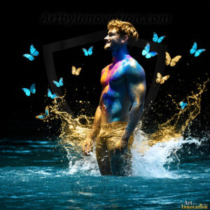 ByjeffFluid, dynamic, and breathtaking — this AI-generated abstract art collection captures handsome men in a cosmic dance with colorful liquid and light. Powerful swirls of vibrant, iridescent fluid erupt and cascade around them, forming swirling vortexes of rainbow color that respond to their every movement. Part fantasy, part surrealism, and entirely extraordinary. Created using Flux.1,…