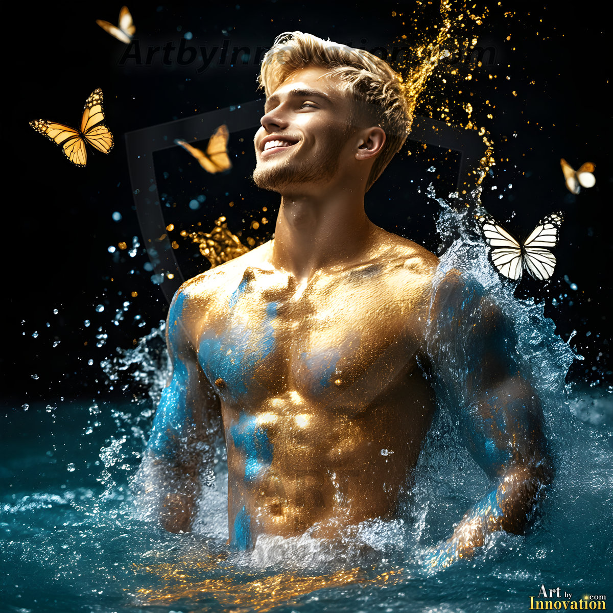 ByjeffThe Beautiful & Handsome Men Art Collection, is a collection of AI generated images of sexy, shirtless, glamorous, handsome guys. In these AI-generated male art HD photos, include guys of all ages just doing random activities, like hiking, camping, and dancing. Generated to be as realistic as possible, with todays technology.