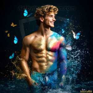 ByjeffThe Beautiful & Handsome Men Art Collection, is a collection of AI generated images of sexy, shirtless, glamorous, handsome guys. In these AI-generated male art HD photos, include guys of all ages just doing random activities, like hiking, camping, and dancing. Generated to be as realistic as possible, with todays technology.