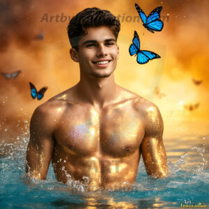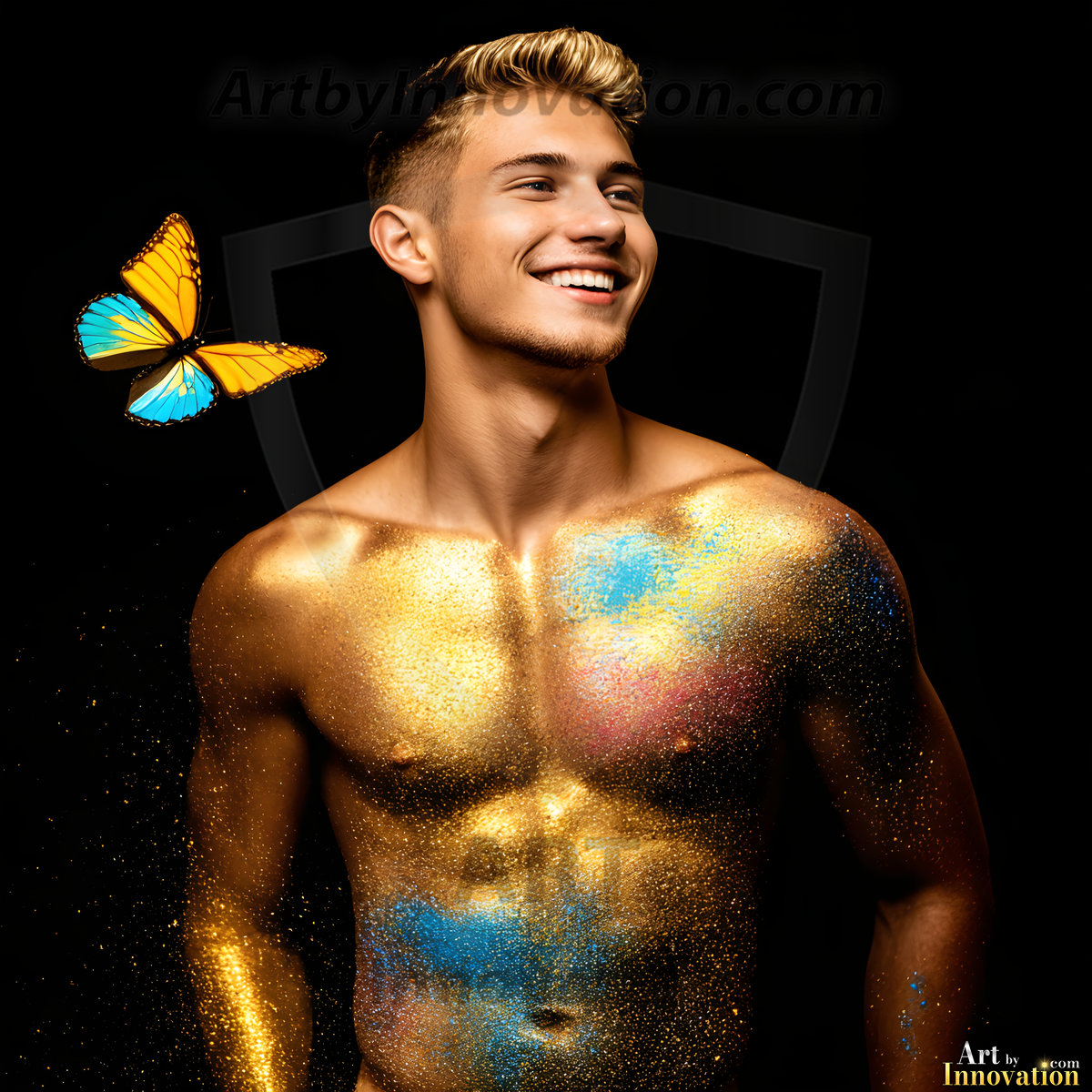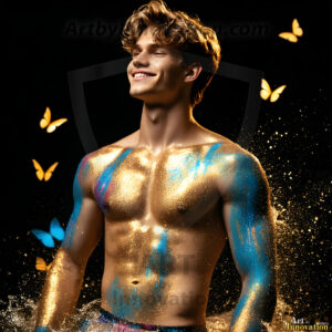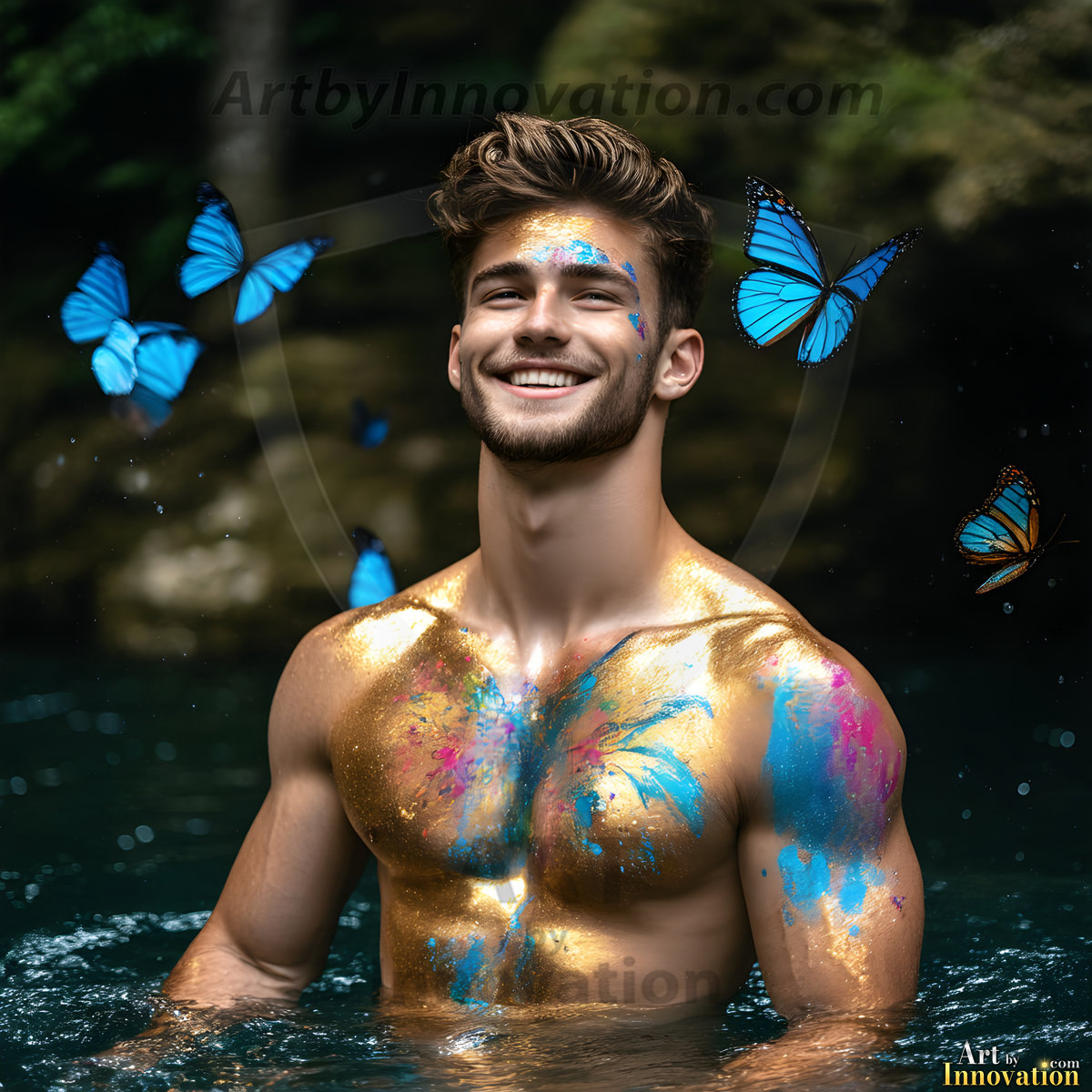 ByjeffThe Beautiful & Handsome Men Art Collection, is a collection of AI generated images of sexy, shirtless, glamorous, handsome guys. In these AI-generated male art HD photos, include guys of all ages just doing random activities, like hiking, camping, and dancing. Generated to be as realistic as possible, with todays technology.