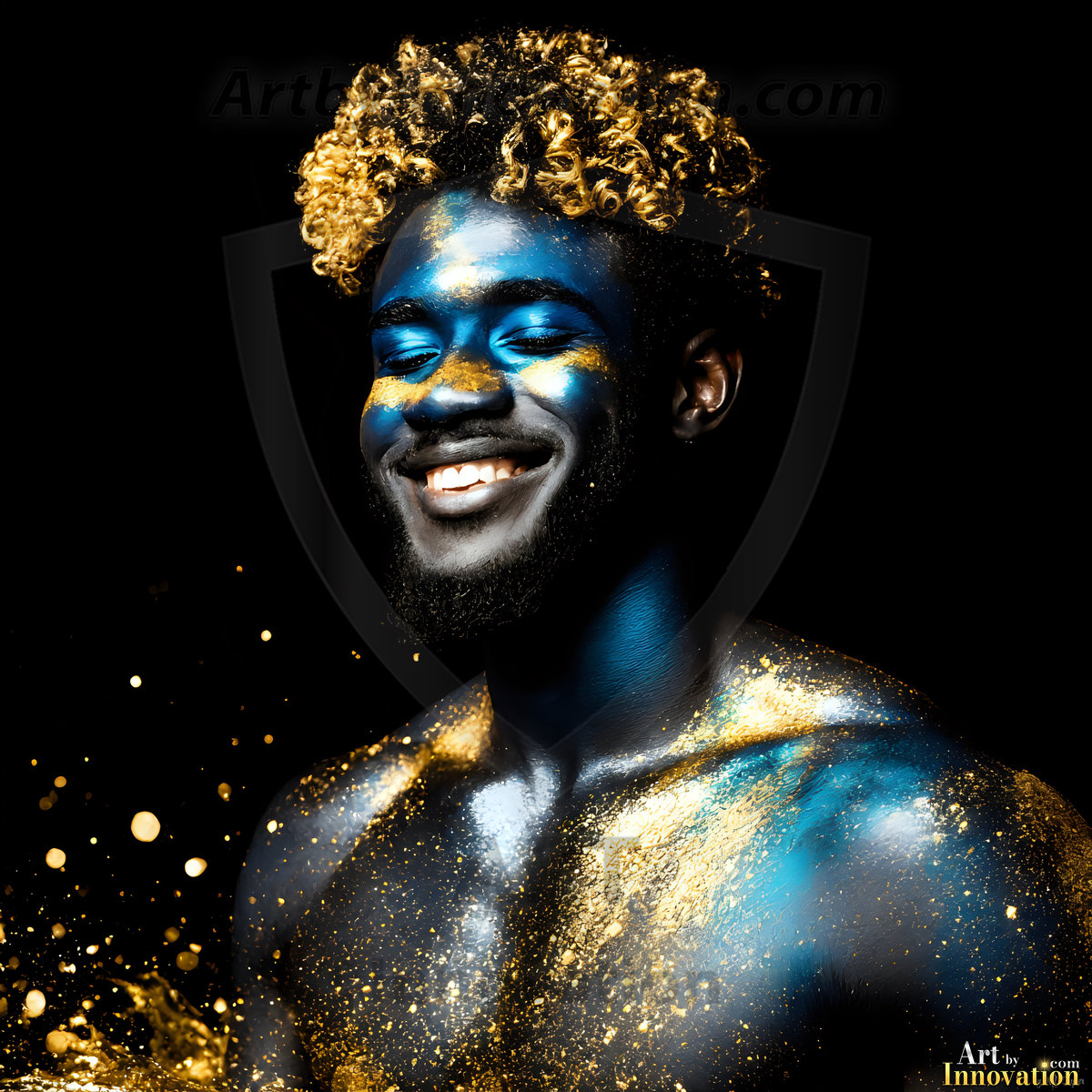 ByjeffAI-generated abstract art — hot handsome men covered in colorful body paint explosions, full of joy and rainbow color.