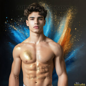 ByjeffAI-generated abstract art — hot handsome men covered in colorful body paint explosions, full of joy and rainbow color.