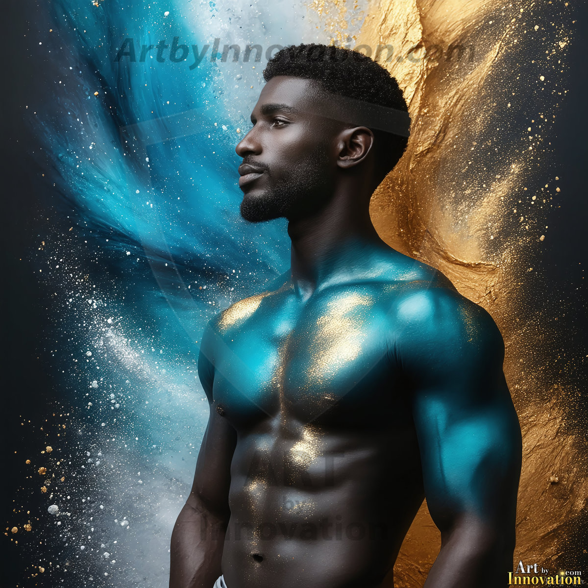 Beauty meets color in this stunning AI-generated abstract art collection. Handsome, shirtless men are enveloped from behind by vibrant, swirling translucent mists of color — inspired by the full spectrum of the rainbow, and the joyful palette of Pride. Each image combines photorealistic skin texture with surreal abstract color dynamics, creating a visual experience that is both deeply human and otherworldly. Created using Flux.1, ComfyUI, and Stable Diffusion by © Jeff Dupler | Art by Innovation | https://www.artbyinnovation.com