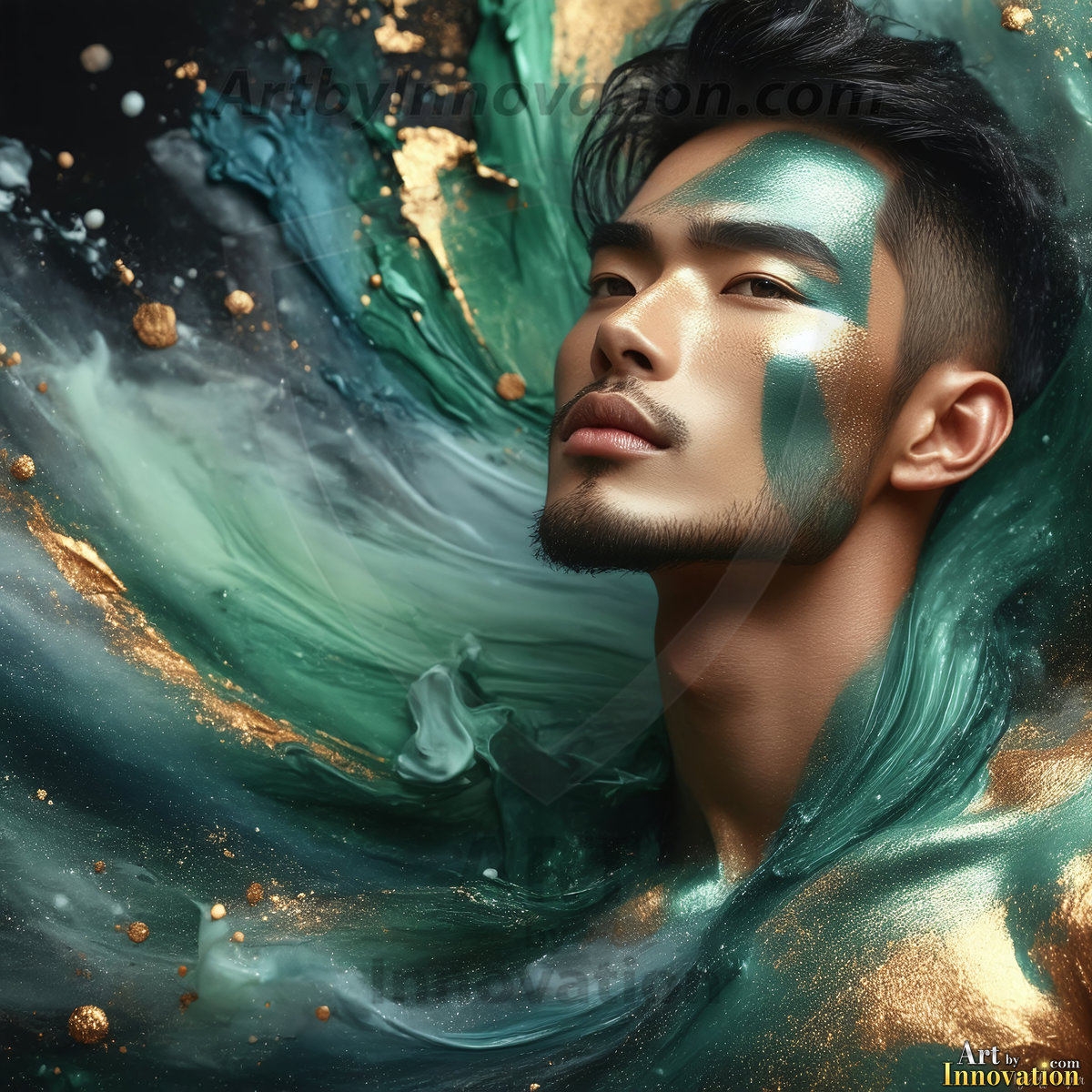 ByjeffFluid, dynamic, and breathtaking — this AI-generated abstract art collection captures handsome men in a cosmic dance with colorful liquid and light. Powerful swirls of vibrant, iridescent fluid erupt and cascade around them, forming swirling vortexes of rainbow color that respond to their every movement. Part fantasy, part surrealism, and entirely extraordinary. Created using Flux.1,…