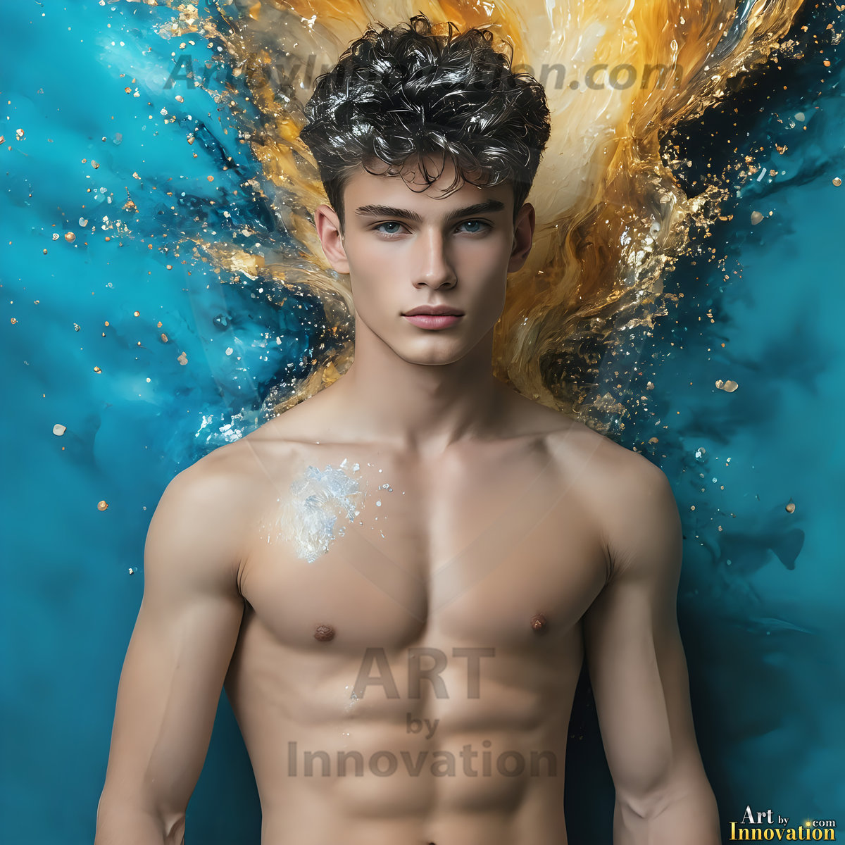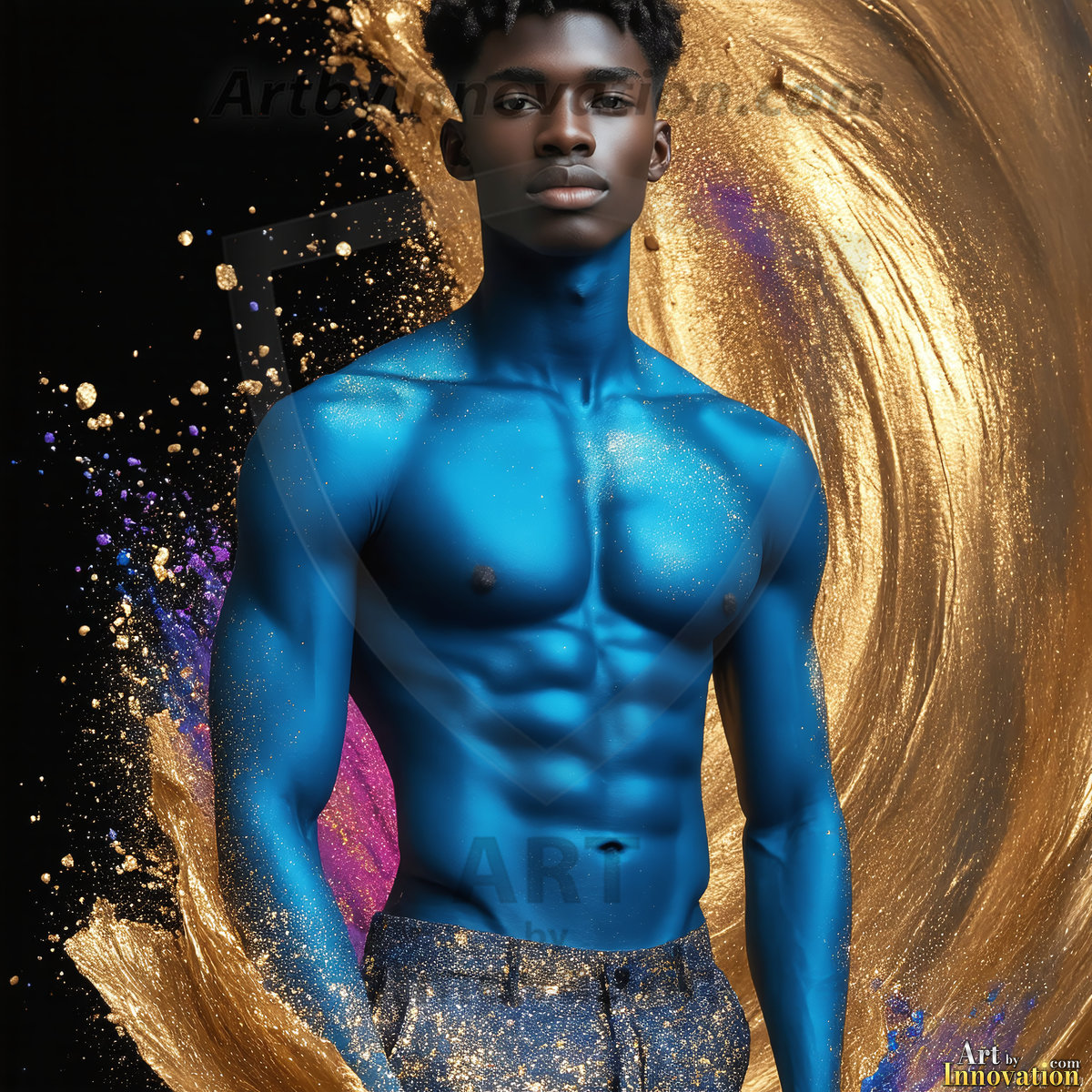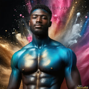 Beauty meets color in this stunning AI-generated abstract art collection. Handsome, shirtless men are enveloped from behind by vibrant, swirling translucent mists of color — inspired by the full spectrum of the rainbow, and the joyful palette of Pride. Each image combines photorealistic skin texture with surreal abstract color dynamics, creating a visual experience that is both deeply human and otherworldly. Created using Flux.1, ComfyUI, and Stable Diffusion by © Jeff Dupler | Art by Innovation | https://www.artbyinnovation.com