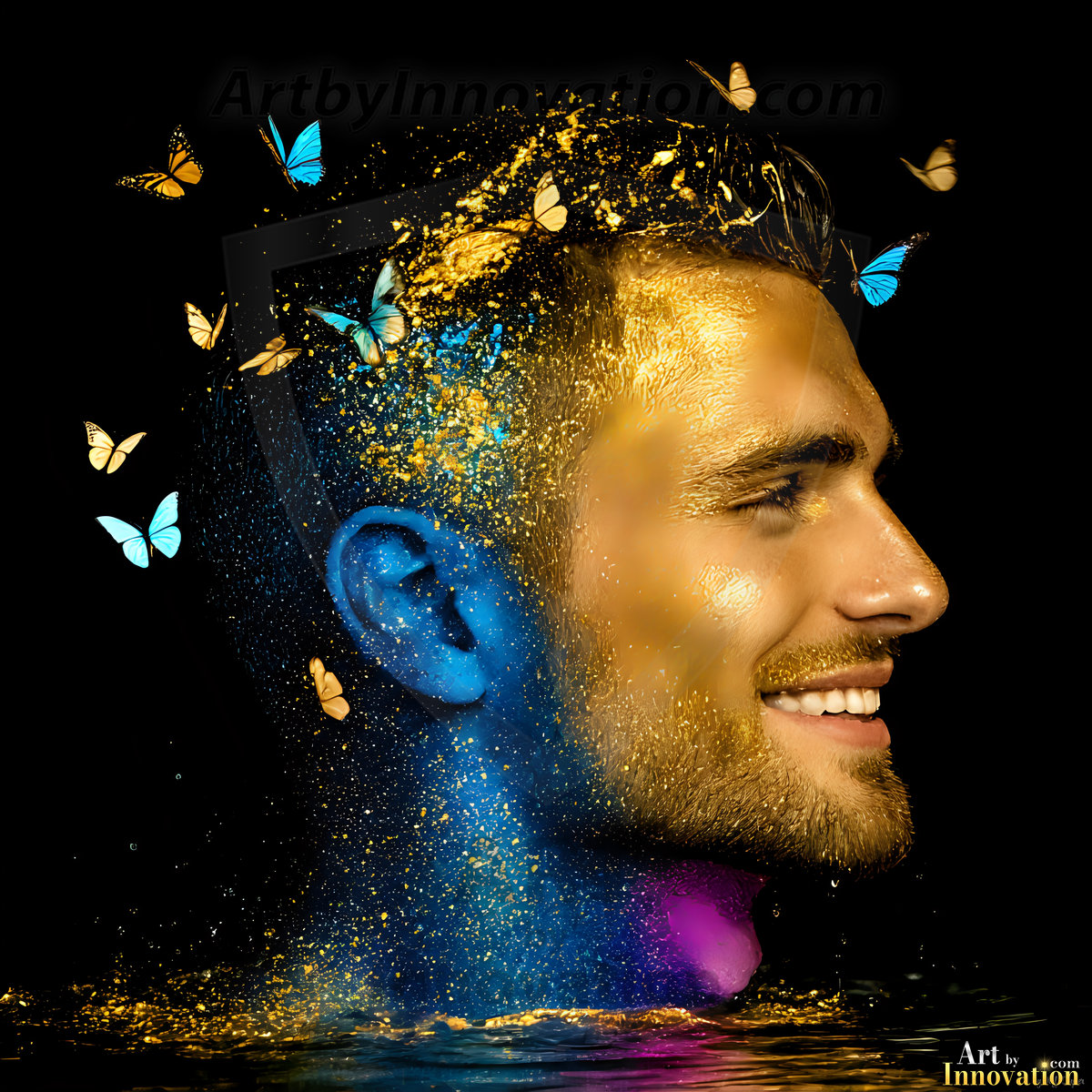 ByjeffArt imitating life — and life imitating art. This AI-generated abstract concept collection features handsome men breaking the fourth wall of the canvas itself, emerging from classic oil paintings as their faces and forms come alive while their bodies remain painted on the wall. A profound meditation on the connection between creative expression and human…