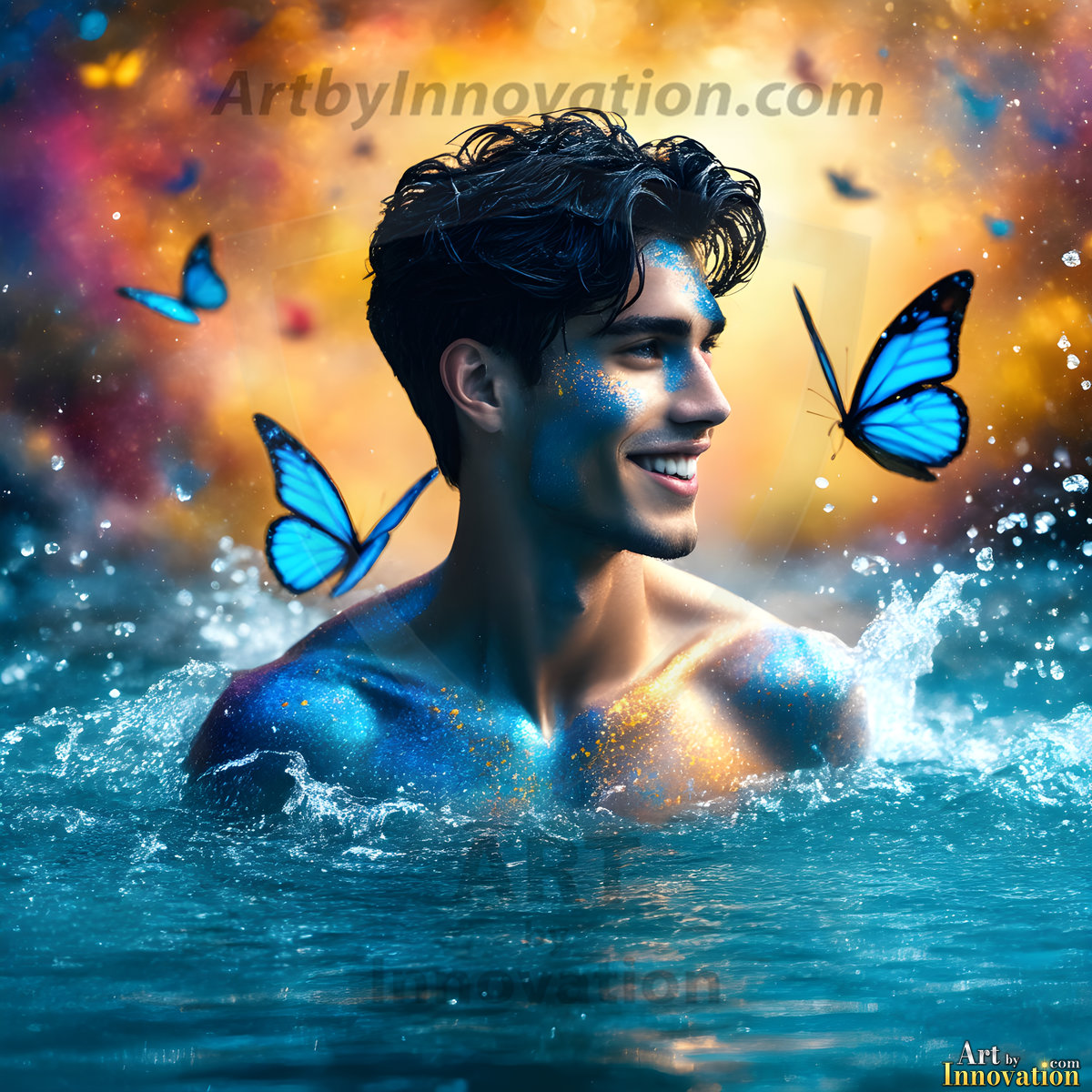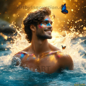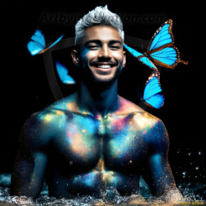 ByjeffThe Beautiful & Handsome Men Art Collection, is a collection of AI generated images of sexy, shirtless, glamorous, handsome guys. In these AI-generated male art HD photos, include guys of all ages just doing random activities, like hiking, camping, and dancing. Generated to be as realistic as possible, with todays technology.