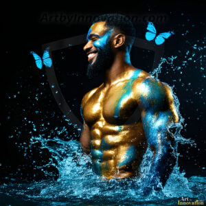 Beauty meets color in this stunning AI-generated abstract art collection. Handsome, shirtless men are enveloped from behind by vibrant, swirling translucent mists of color — inspired by the full spectrum of the rainbow, and the joyful palette of Pride. Each image combines photorealistic skin texture with surreal abstract color dynamics, creating a visual experience that is both deeply human and otherworldly. Created using Flux.1, ComfyUI, and Stable Diffusion by © Jeff Dupler | Art by Innovation | https://www.artbyinnovation.com