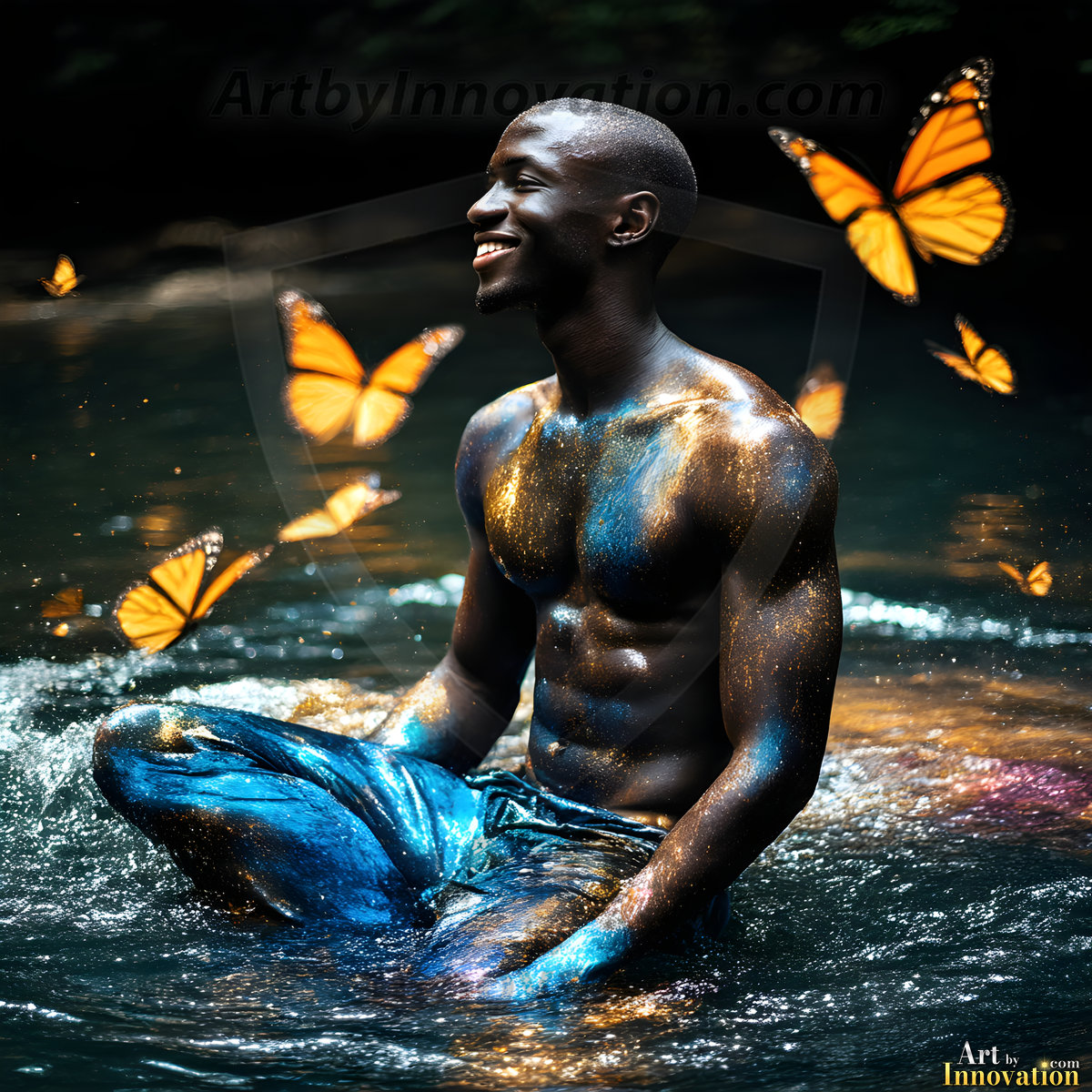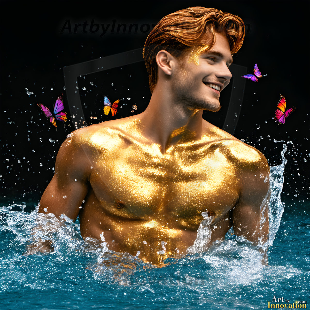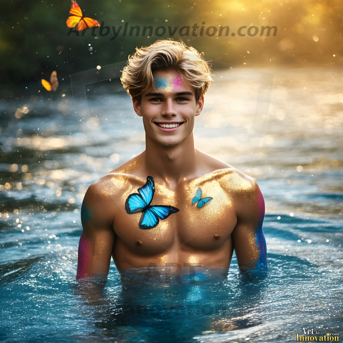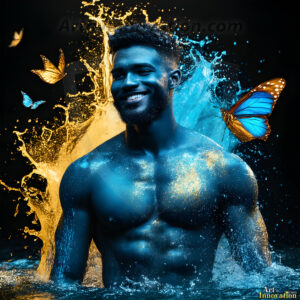 Beauty meets color in this stunning AI-generated abstract art collection. Handsome, shirtless men are enveloped from behind by vibrant, swirling translucent mists of color — inspired by the full spectrum of the rainbow, and the joyful palette of Pride. Each image combines photorealistic skin texture with surreal abstract color dynamics, creating a visual experience that is both deeply human and otherworldly. Created using Flux.1, ComfyUI, and Stable Diffusion by © Jeff Dupler | Art by Innovation | https://www.artbyinnovation.com
