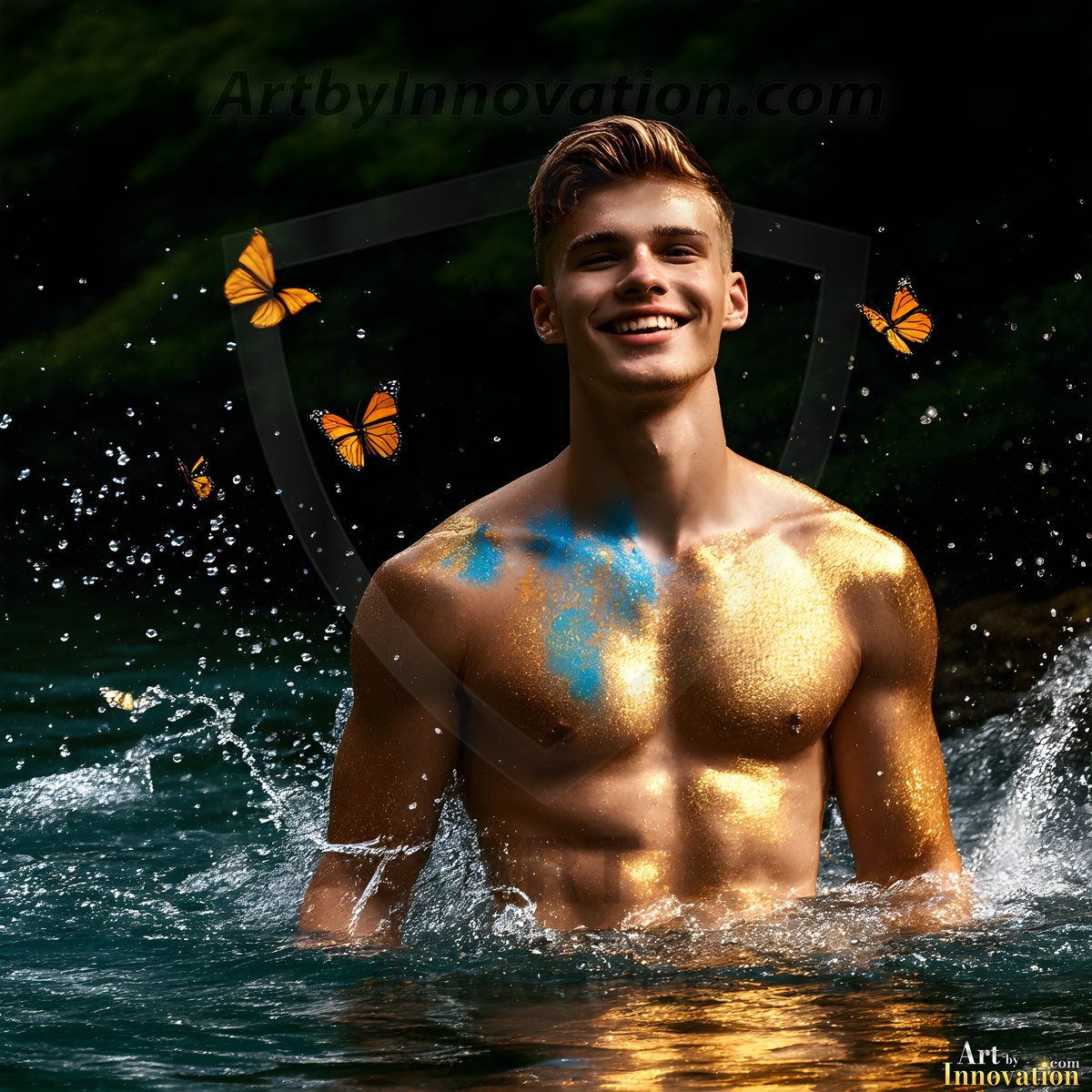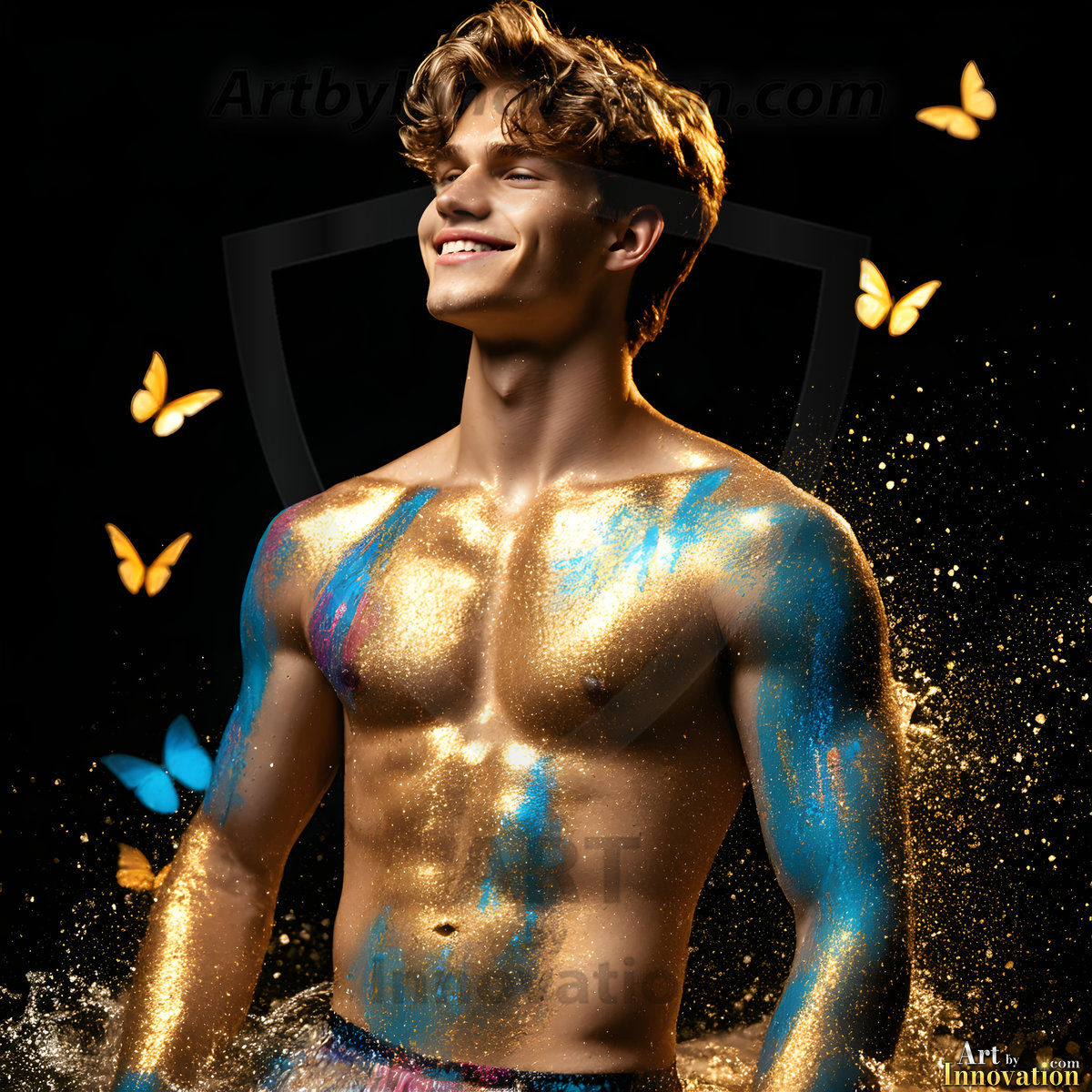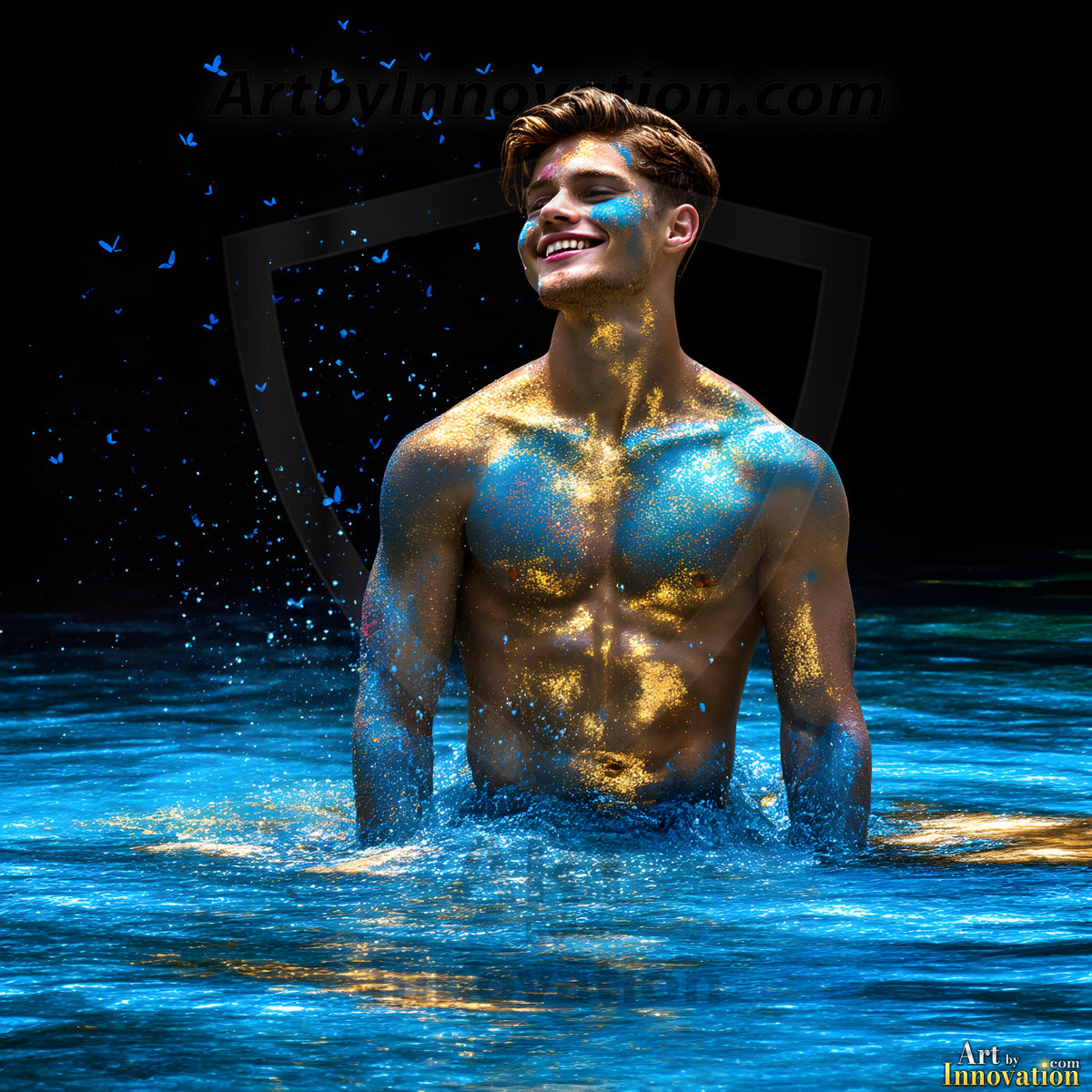 Beauty meets color in this stunning AI-generated abstract art collection. Handsome, shirtless men are enveloped from behind by vibrant, swirling translucent mists of color — inspired by the full spectrum of the rainbow, and the joyful palette of Pride. Each image combines photorealistic skin texture with surreal abstract color dynamics, creating a visual experience that is both deeply human and otherworldly. Created using Flux.1, ComfyUI, and Stable Diffusion by © Jeff Dupler | Art by Innovation | https://www.artbyinnovation.com