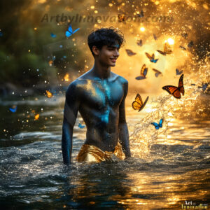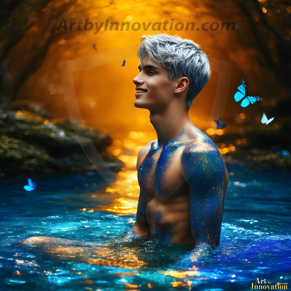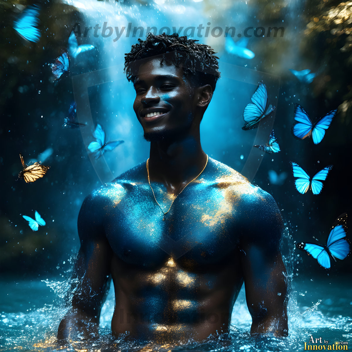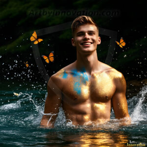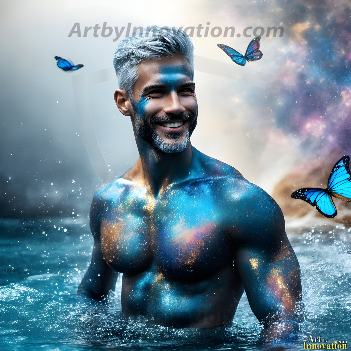 Beauty meets color in this stunning AI-generated abstract art collection. Handsome, shirtless men are enveloped from behind by vibrant, swirling translucent mists of color — inspired by the full spectrum of the rainbow, and the joyful palette of Pride. Each image combines photorealistic skin texture with surreal abstract color dynamics, creating a visual experience that is both deeply human and otherworldly. Created using Flux.1, ComfyUI, and Stable Diffusion by © Jeff Dupler | Art by Innovation | https://www.artbyinnovation.com