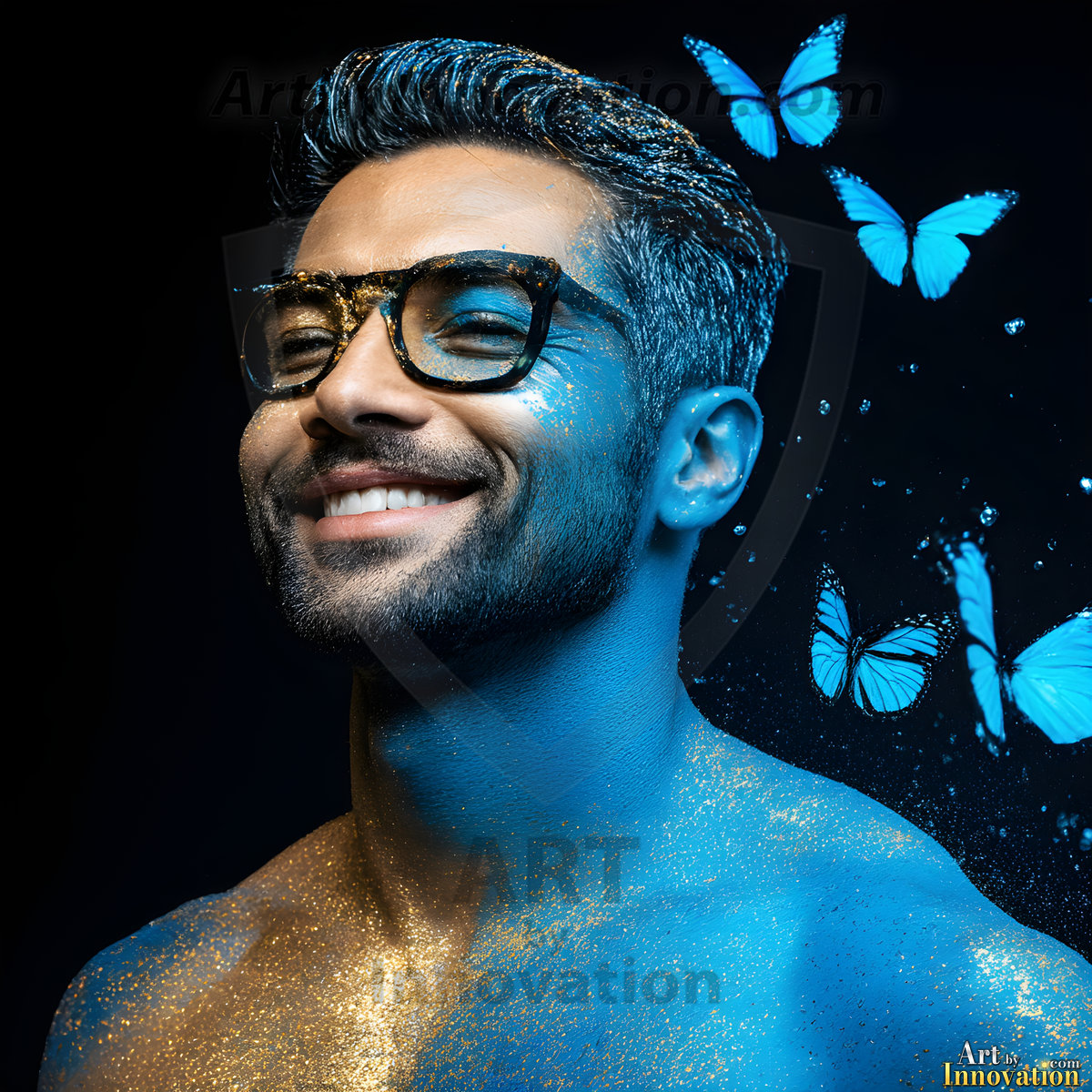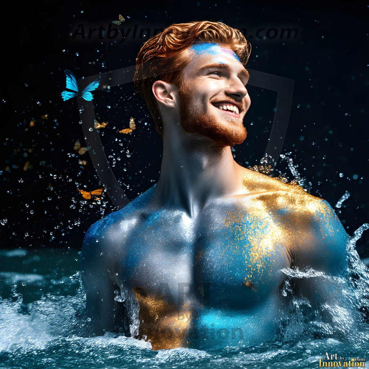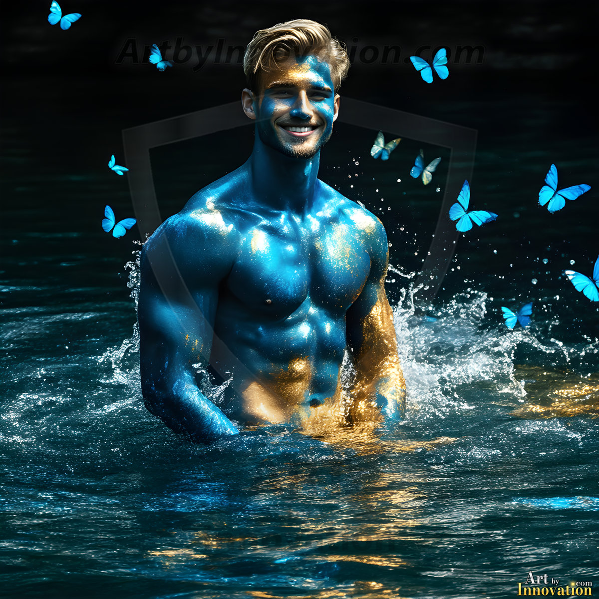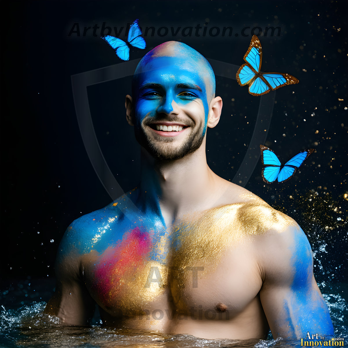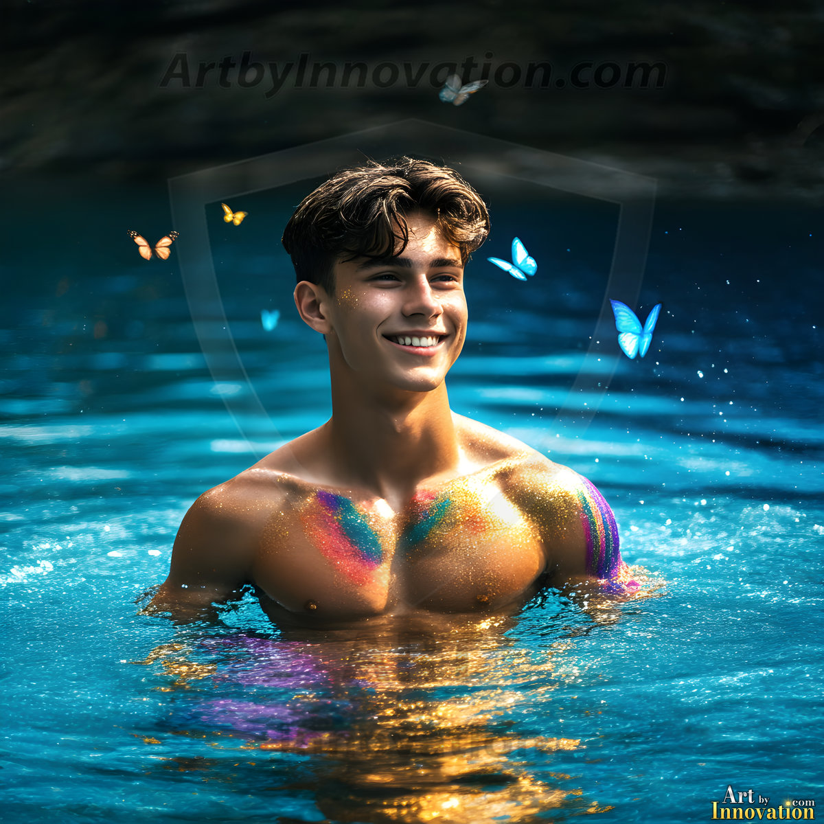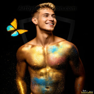 Beauty meets color in this stunning AI-generated abstract art collection. Handsome, shirtless men are enveloped from behind by vibrant, swirling translucent mists of color — inspired by the full spectrum of the rainbow, and the joyful palette of Pride. Each image combines photorealistic skin texture with surreal abstract color dynamics, creating a visual experience that is both deeply human and otherworldly. Created using Flux.1, ComfyUI, and Stable Diffusion by © Jeff Dupler | Art by Innovation | https://www.artbyinnovation.com