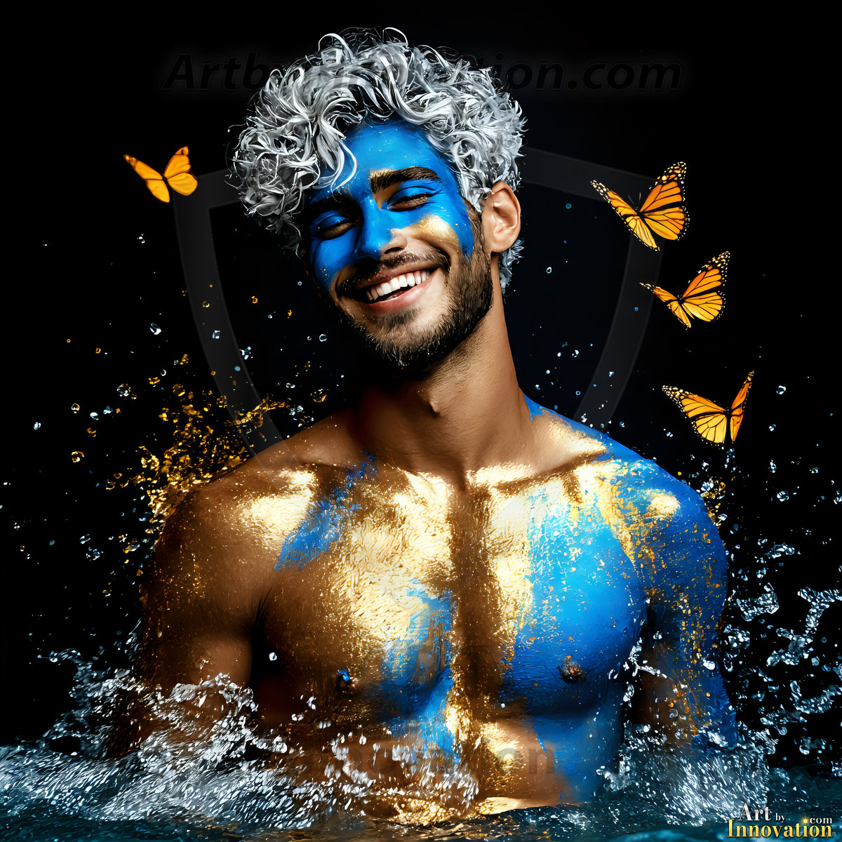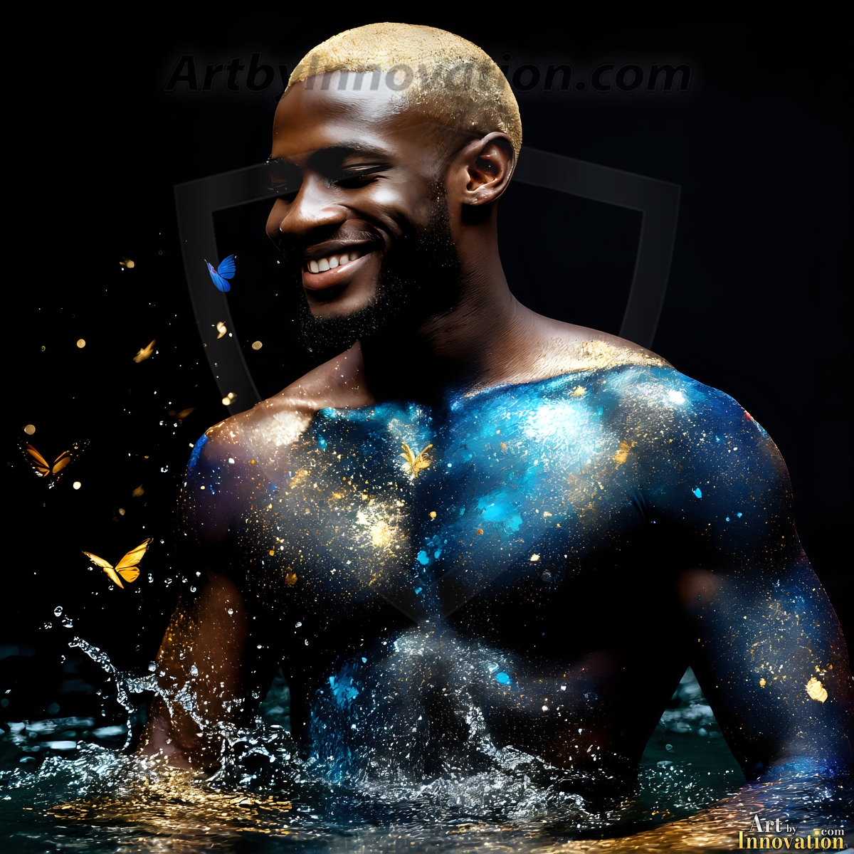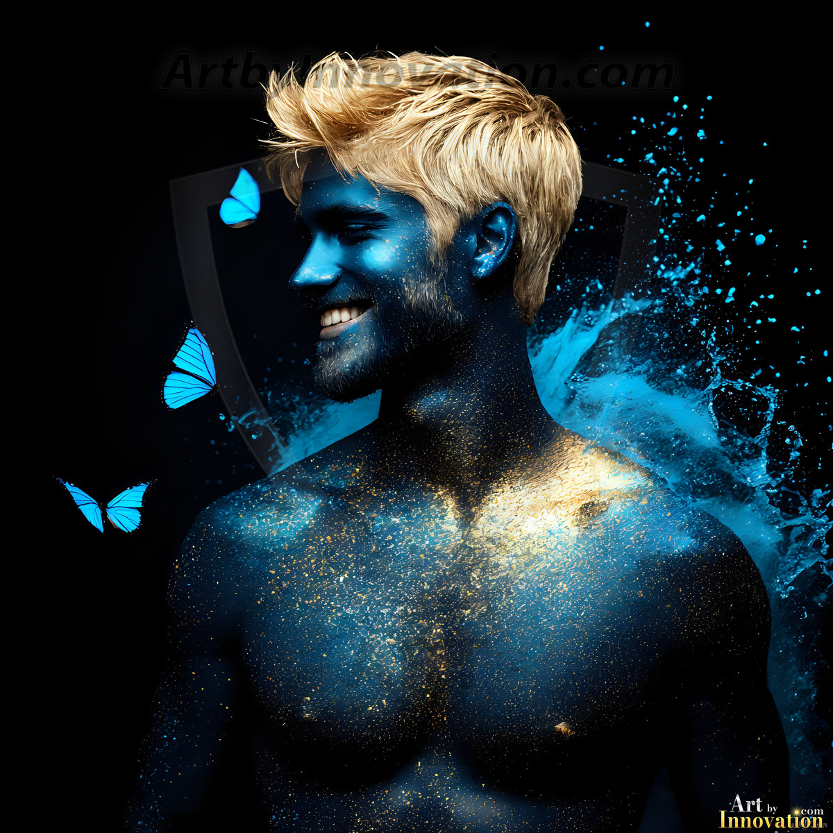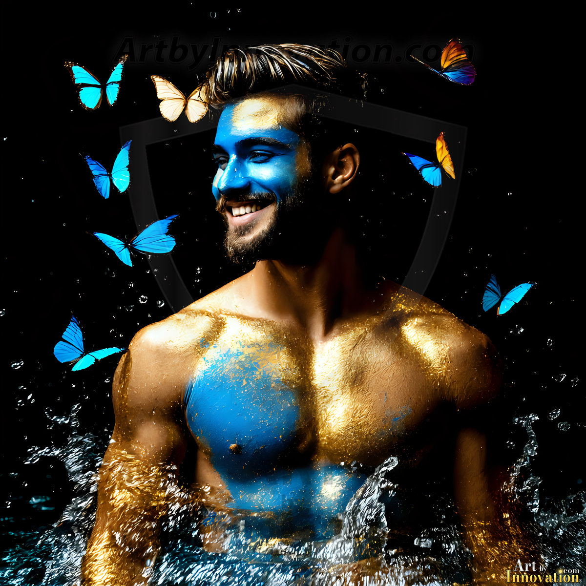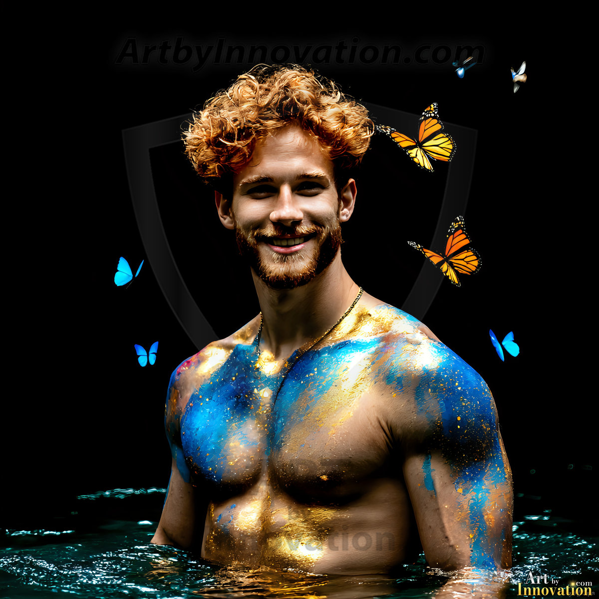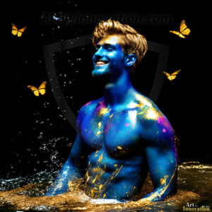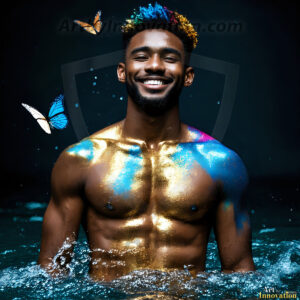 Beauty meets color in this stunning AI-generated abstract art collection. Handsome, shirtless men are enveloped from behind by vibrant, swirling translucent mists of color — inspired by the full spectrum of the rainbow, and the joyful palette of Pride. Each image combines photorealistic skin texture with surreal abstract color dynamics, creating a visual experience that is both deeply human and otherworldly. Created using Flux.1, ComfyUI, and Stable Diffusion by © Jeff Dupler | Art by Innovation | https://www.artbyinnovation.com