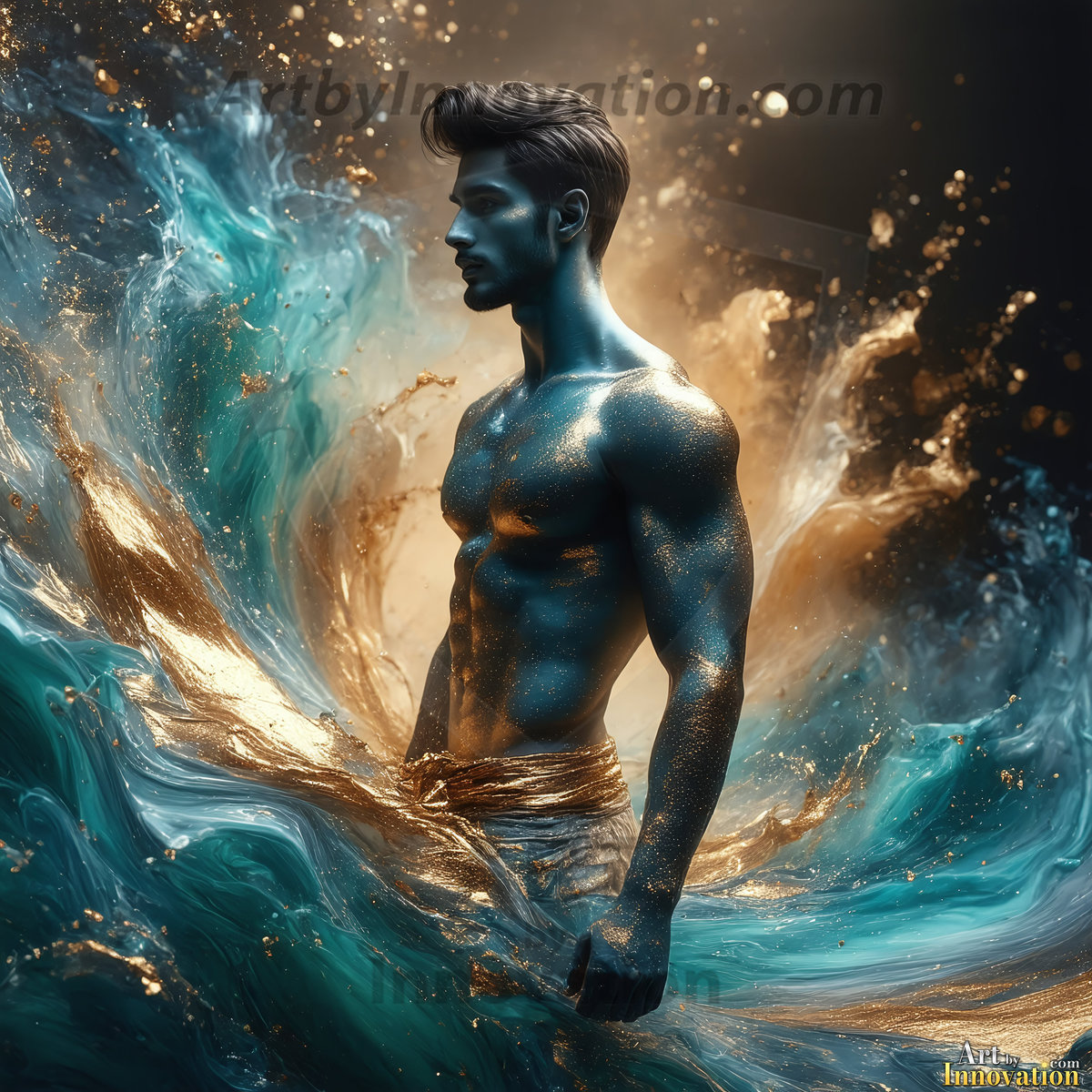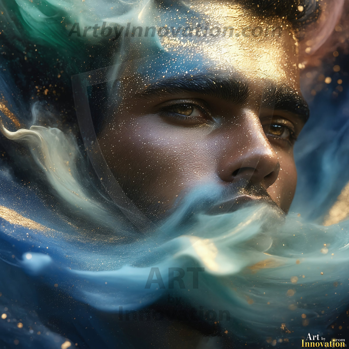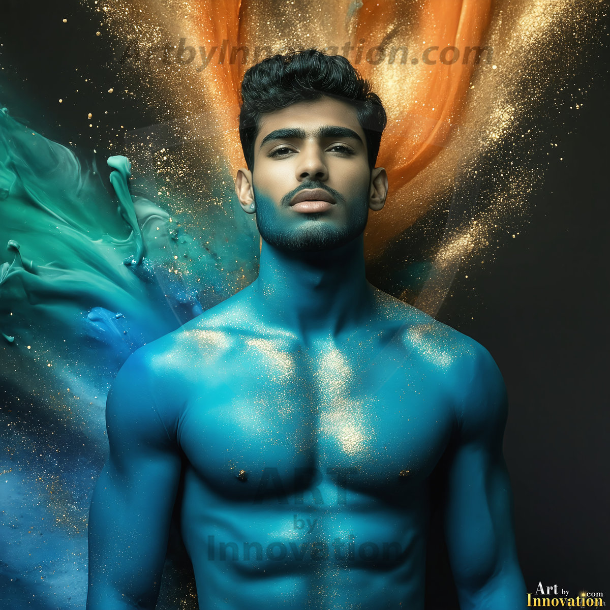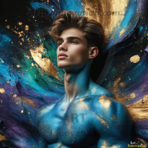 Beauty meets color in this stunning AI-generated abstract art collection. Handsome, shirtless men are enveloped from behind by vibrant, swirling translucent mists of color — inspired by the full spectrum of the rainbow, and the joyful palette of Pride. Each image combines photorealistic skin texture with surreal abstract color dynamics, creating a visual experience that is both deeply human and otherworldly. Created using Flux.1, ComfyUI, and Stable Diffusion by © Jeff Dupler | Art by Innovation | https://www.artbyinnovation.com