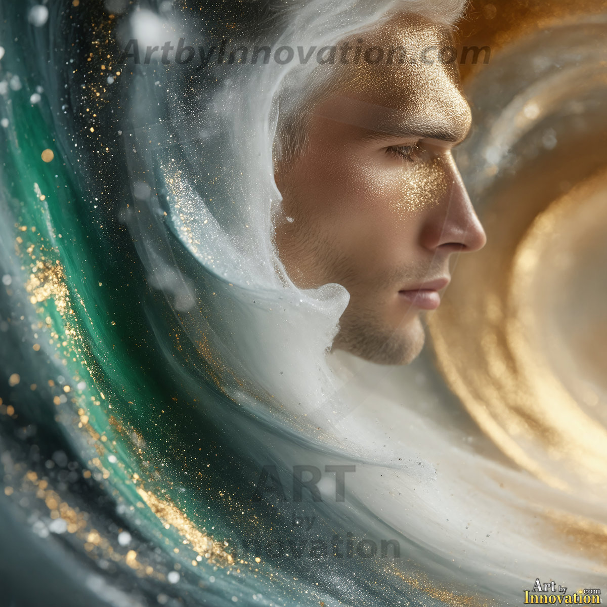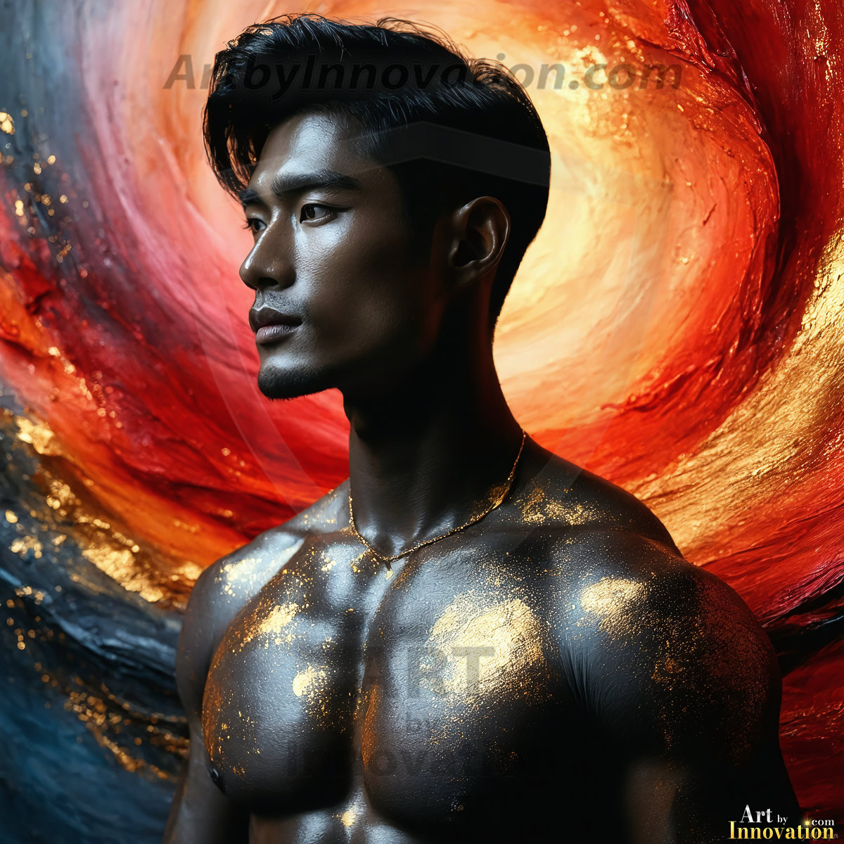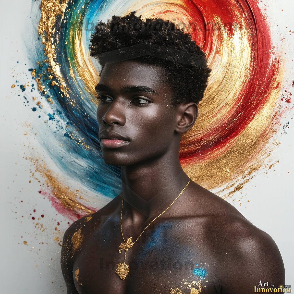 Beauty meets color in this stunning AI-generated abstract art collection. Handsome, shirtless men are enveloped from behind by vibrant, swirling translucent mists of color — inspired by the full spectrum of the rainbow, and the joyful palette of Pride. Each image combines photorealistic skin texture with surreal abstract color dynamics, creating a visual experience that is both deeply human and otherworldly. Created using Flux.1, ComfyUI, and Stable Diffusion by © Jeff Dupler | Art by Innovation | https://www.artbyinnovation.com